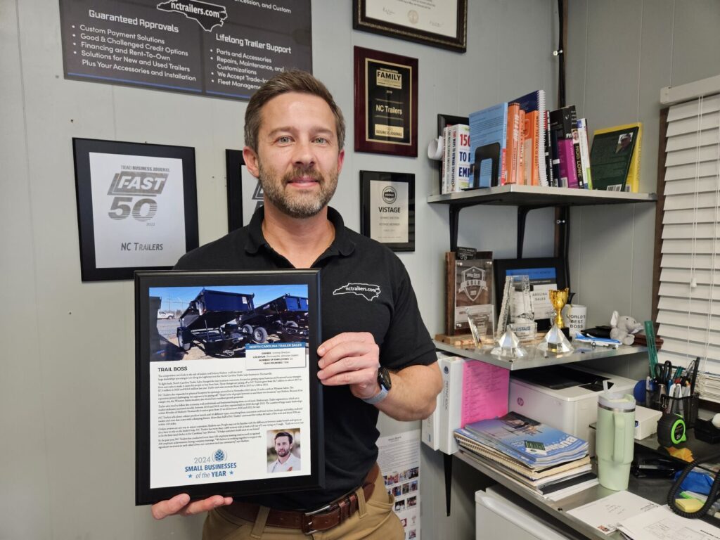 But the awards come anyway for the Thomasville business started in 1996 by Shelton’s parents, Debbie and Lynn Shelton, which they sold to him when they retired in 2015. NC Trailers was just named one of four Small Businesses of the Year by Business North Carolina magazine from a field of 49 nominees, and it also was named Business of the Year by the Mount Airy Chamber of Commerce, which it joined in 2023 to network with businesses in Surry County and surrounding areas.