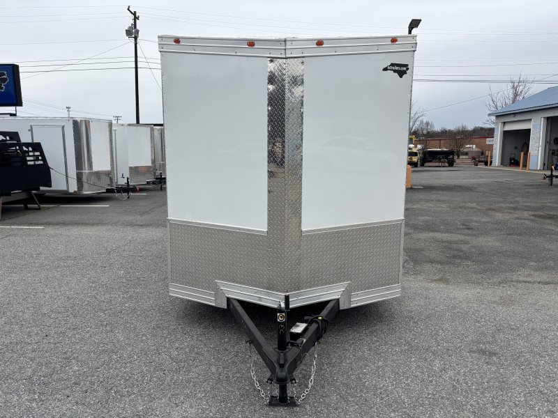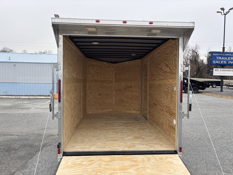 This v-nose 7x12 enclosed cargo trailer has a single axle with a rating of 3,000 lb GVWR. This Pro Series model has a 7' interior height, rear ramp door, 0.080"" polycore sides, a slant v-nose, rear wing with LED lights, and a 2000 lb jack.