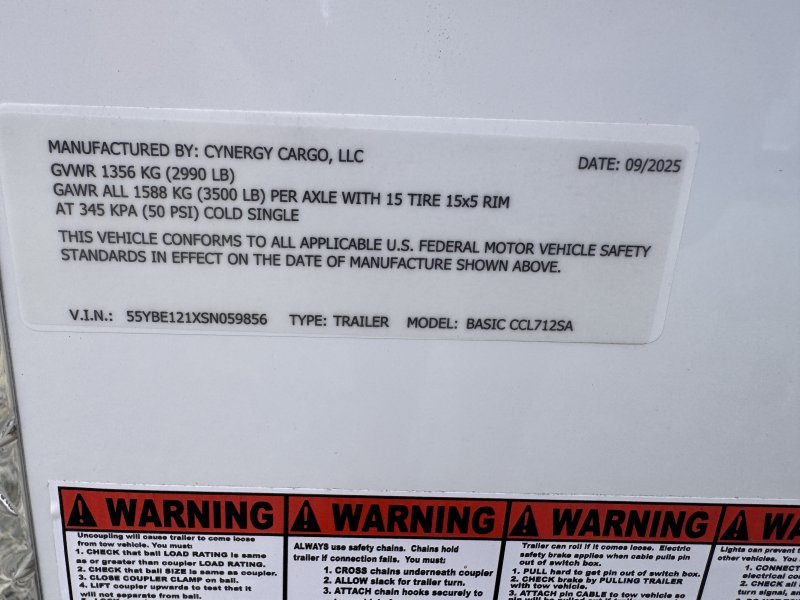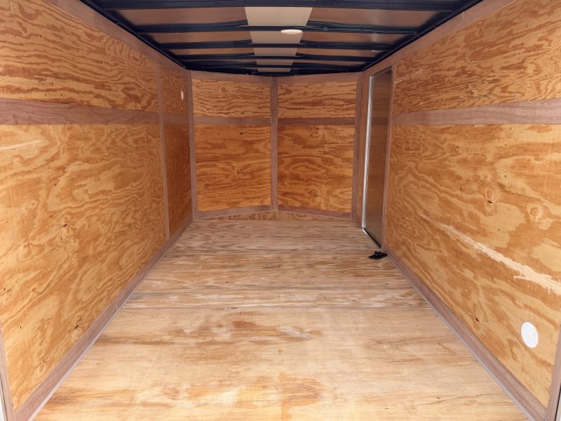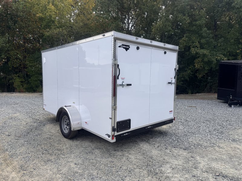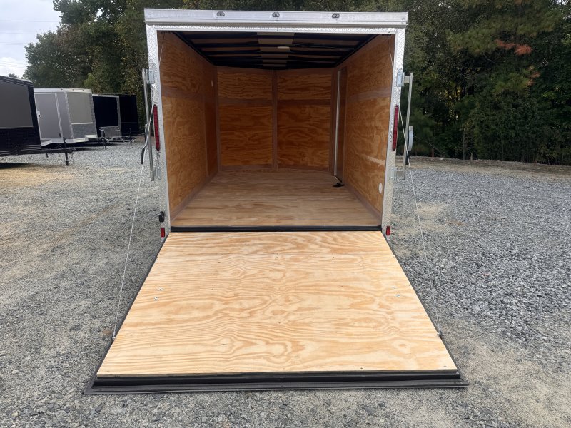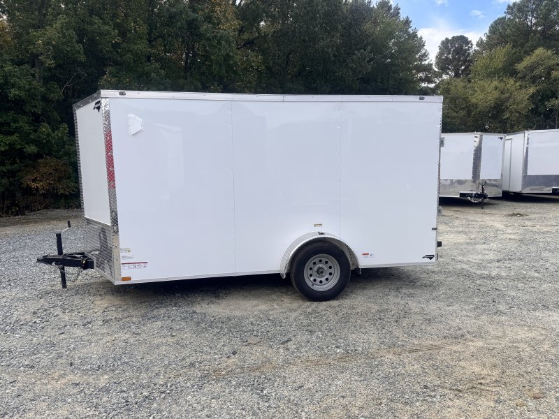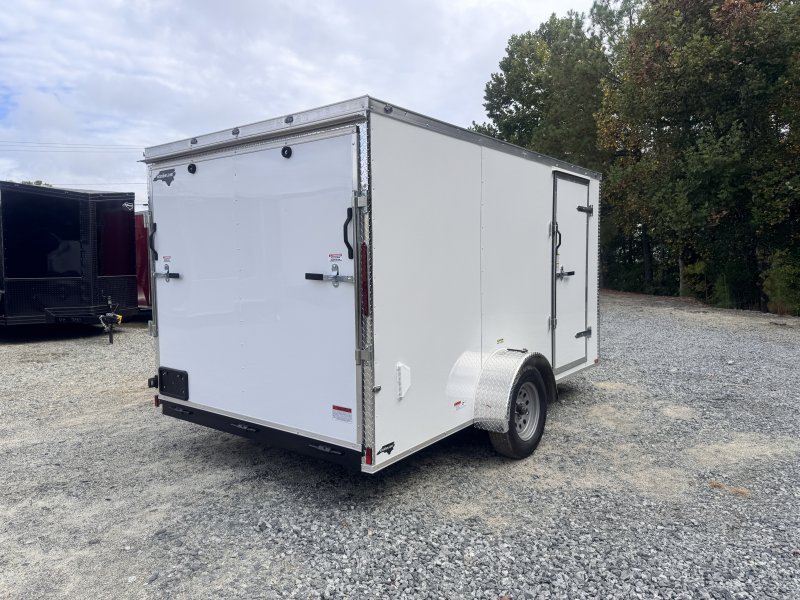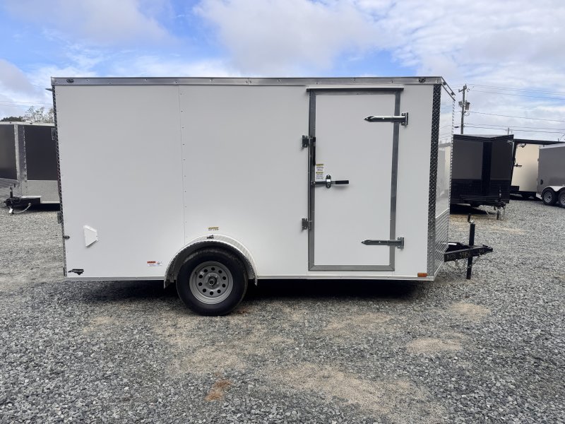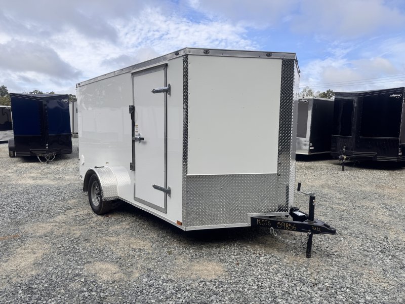 This v-nose 7x12 enclosed cargo trailer has 6'3"" interior height, a single braking axle with a rating of 2,990 lb GVWR. This type of trailer is ideal for light-duty or residential tasks. This model has a side door, a rear ramp door, and a 2000 lb jack.