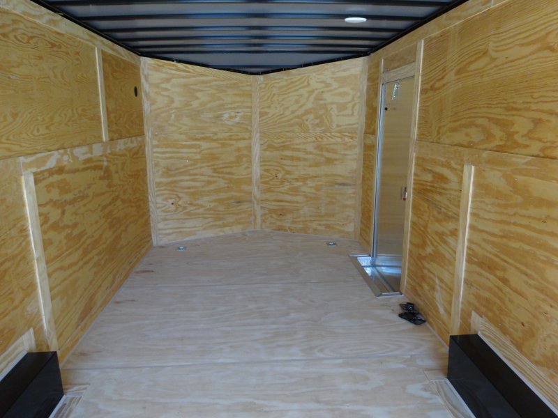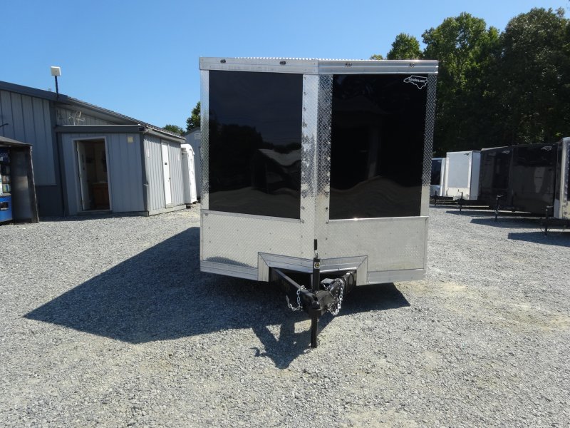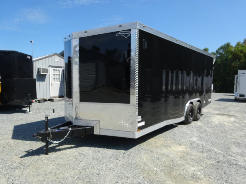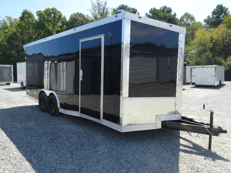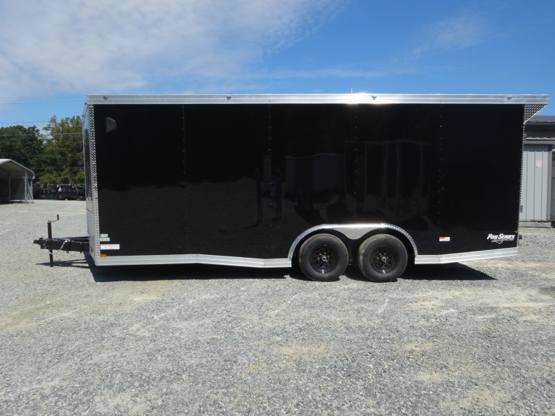 This v-nose 8.5x20 enclosed cargo trailer has a tandem axles with brakes with a rating of 10,000 lb GVWR. This Pro Series model has a side door, a rear ramp door, 0.080"" polycore sides, a slant v-nose, rear wing, and a 2000 lb jack.