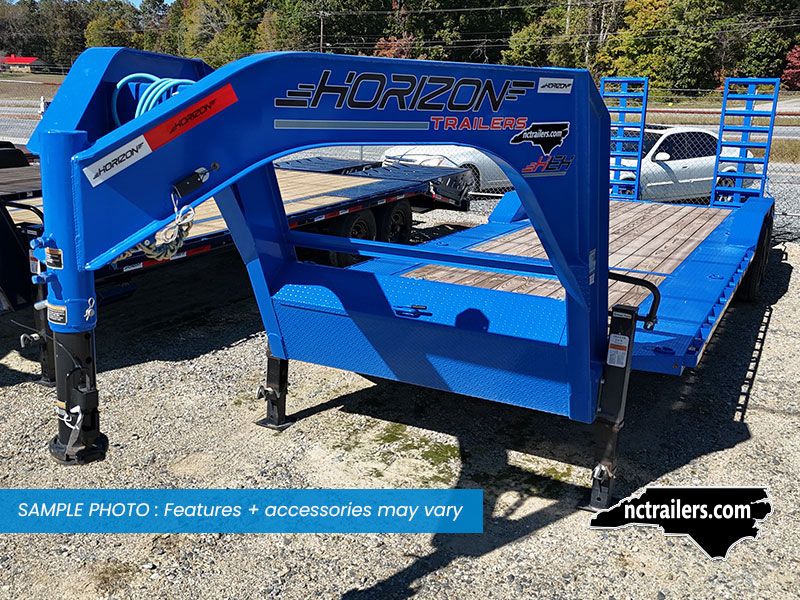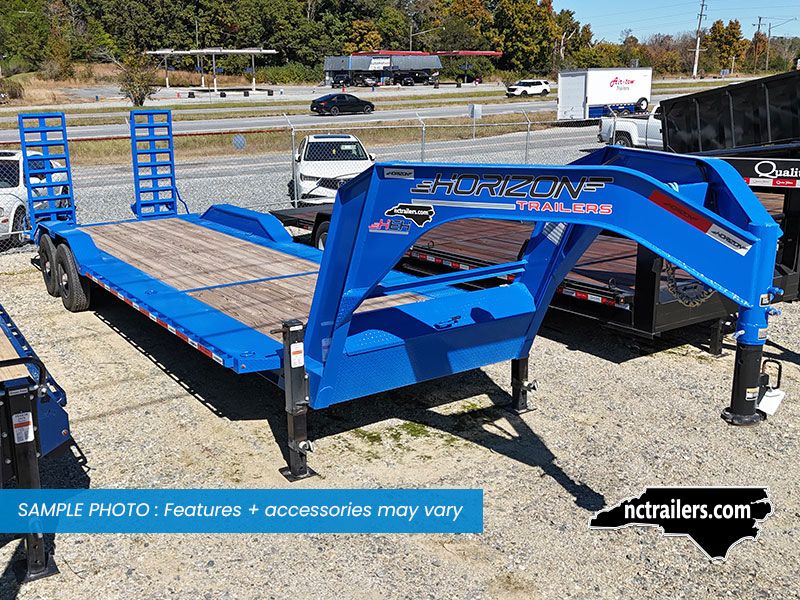 22K GVWR 26 ft tandem gooseneck trailer has 2,500 lb drive-over fenders. Two 10,000 lb. electric brake axles with heavy-duty slipper spring suspension and 16″ tires. Meet the Horizon HEH equipment trailer, the epitome of rugged efficiency and superior functionality. Designed for both bumper pull and gooseneck configurations, this trailer offers various lengths ranging from 18' to 26', providing you the perfect platform to haul your heavy-duty equipment. With its sturdy design features, it's a formidable contender in the equipment hauling sector.