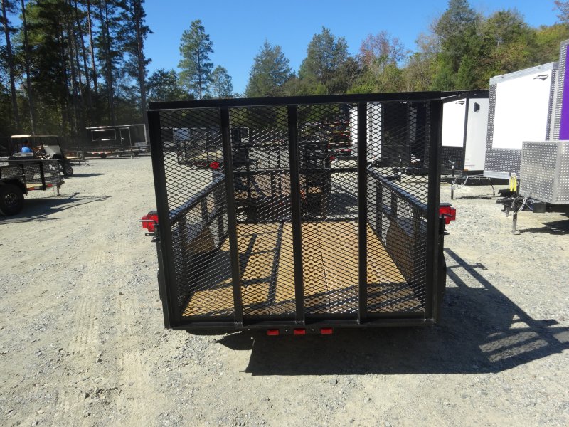 This standard 8-foot length, landscaping/utility trailer has 24" mesh sides with 60" trailer width and 48" gate. GVWR rating of 2,990 lb.