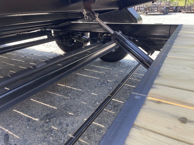 Our deluxe half tilt equipment trailer has 14K GVWR, 82" between the fenders, and provides 8' of fixed deck, and 14' of tilt ramp with hydraulics.