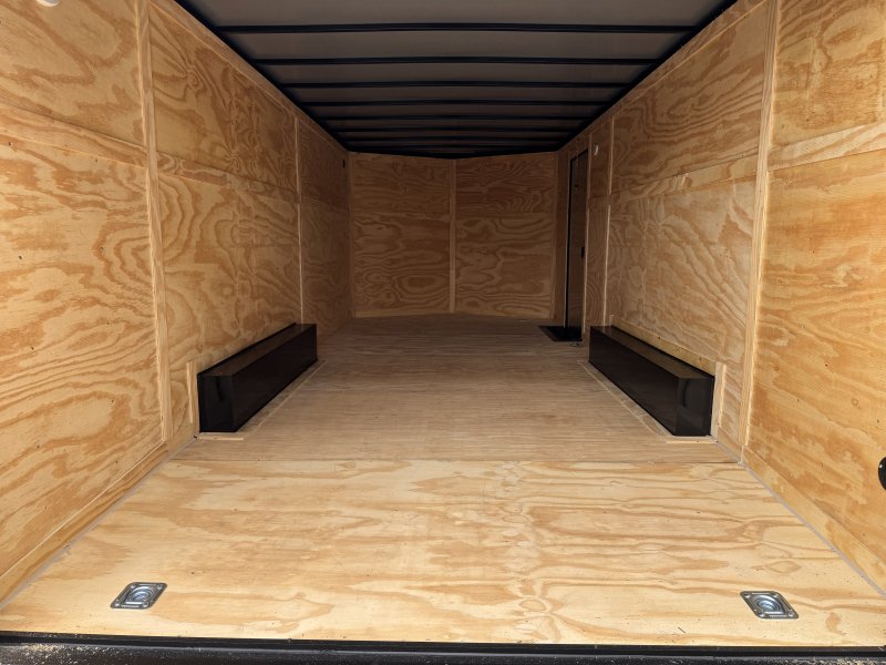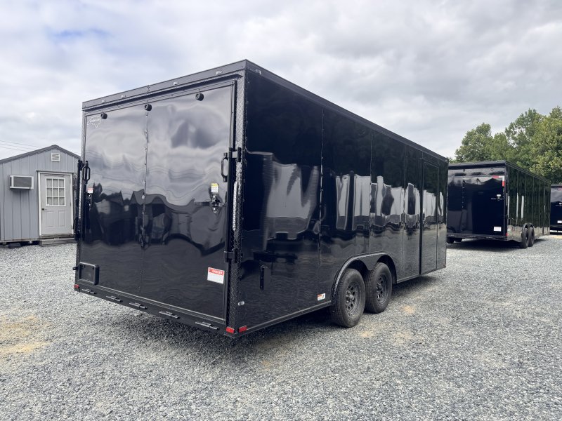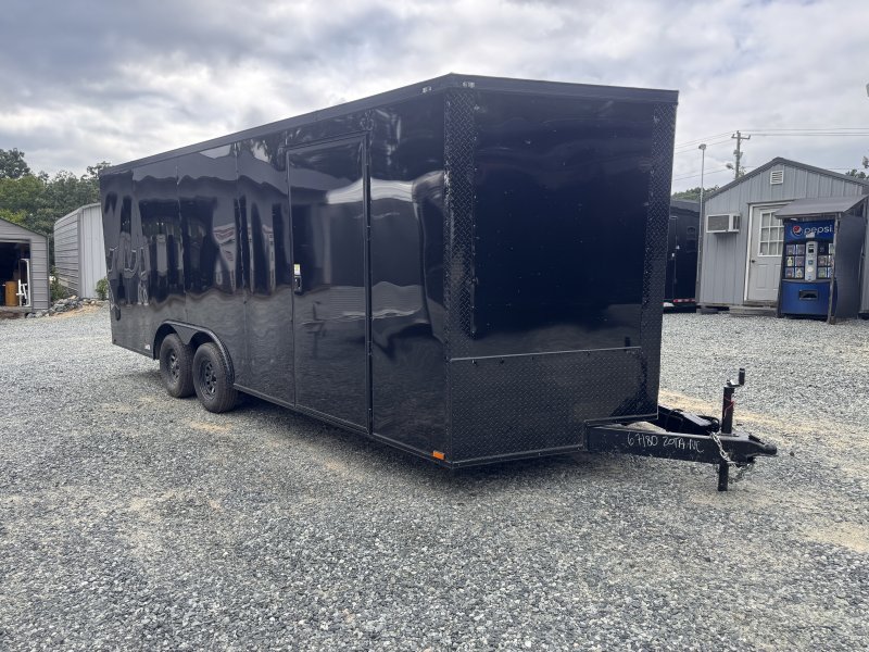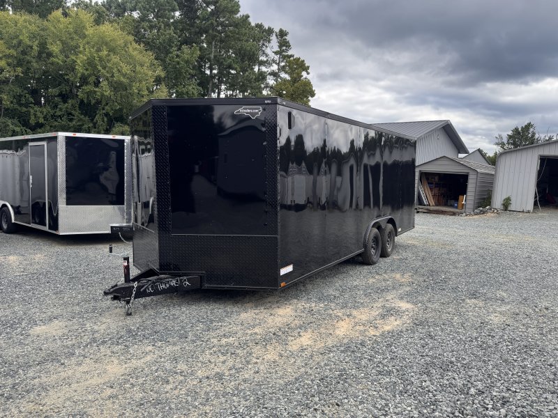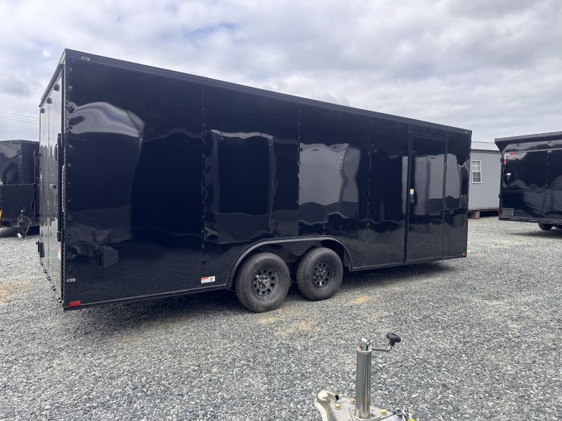 This v-nose 8.5x20 enclosed cargo trailer has a 6'6" interior height, tandem axles with brakes with a rating of 7,000 lb GVWR. This type of trailer is ideal for light-duty or residential tasks. This model has a side door, a rear ramp door, and a 2000 lb jack.