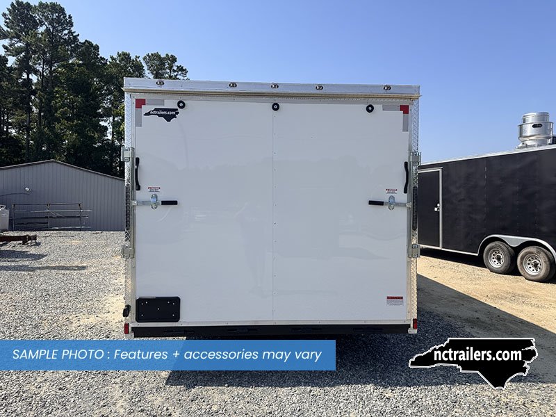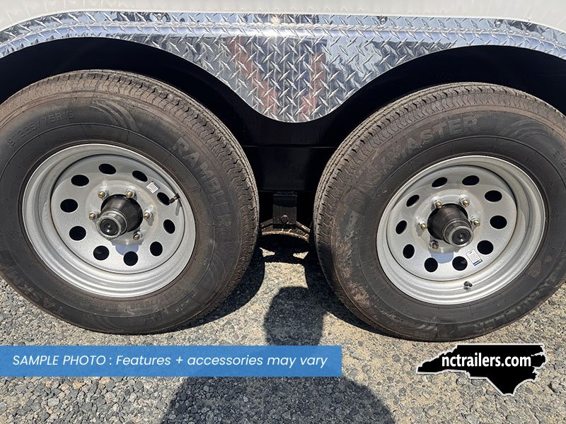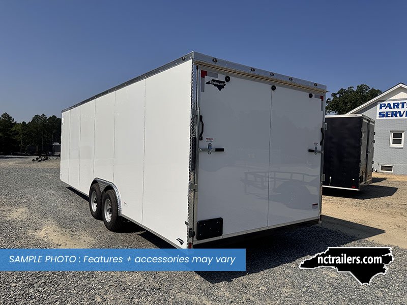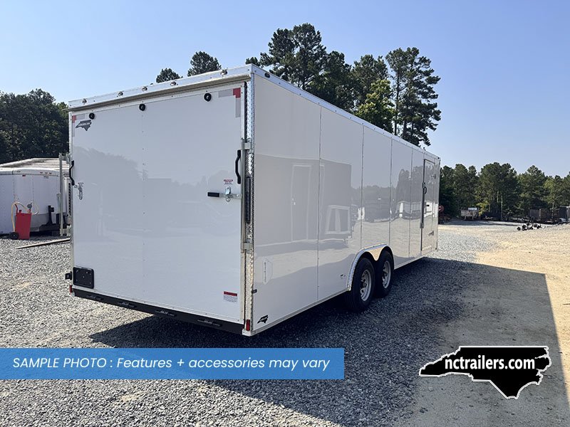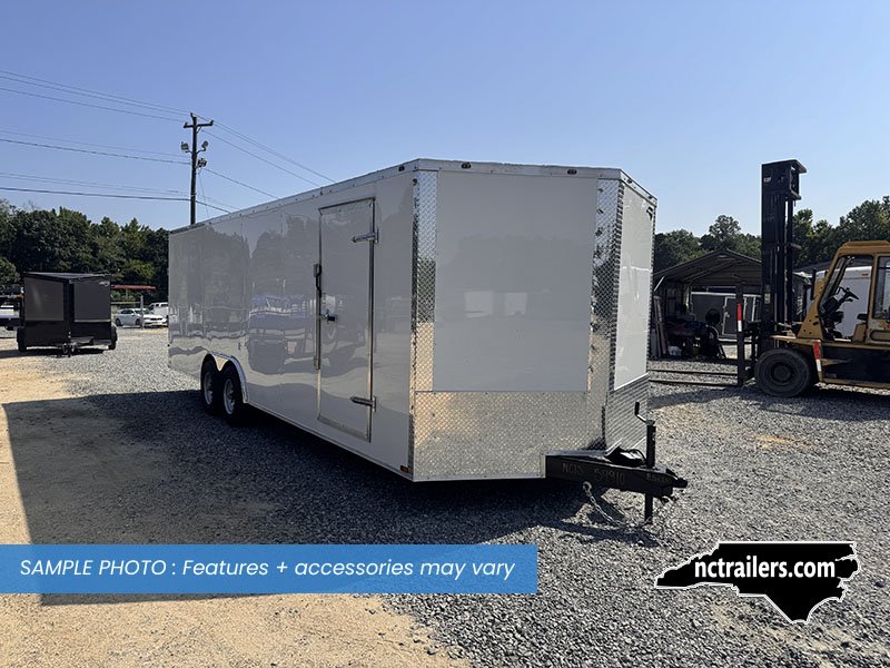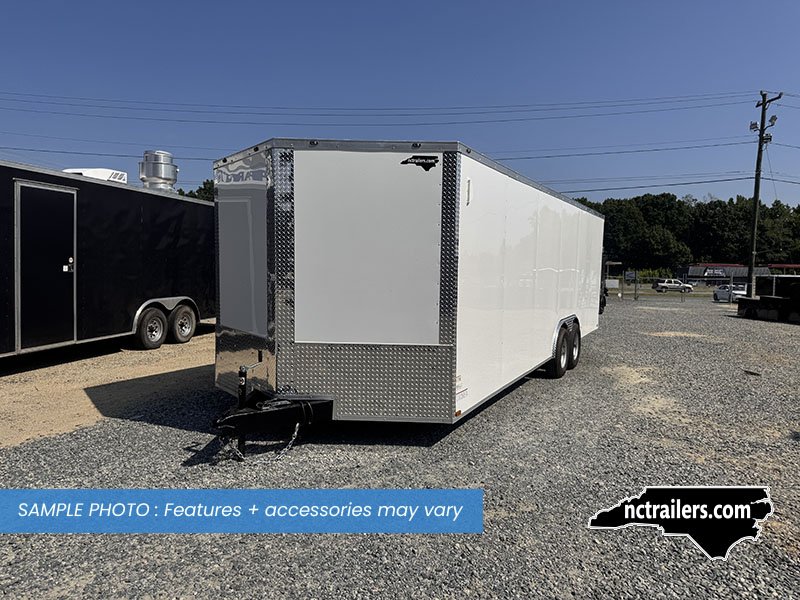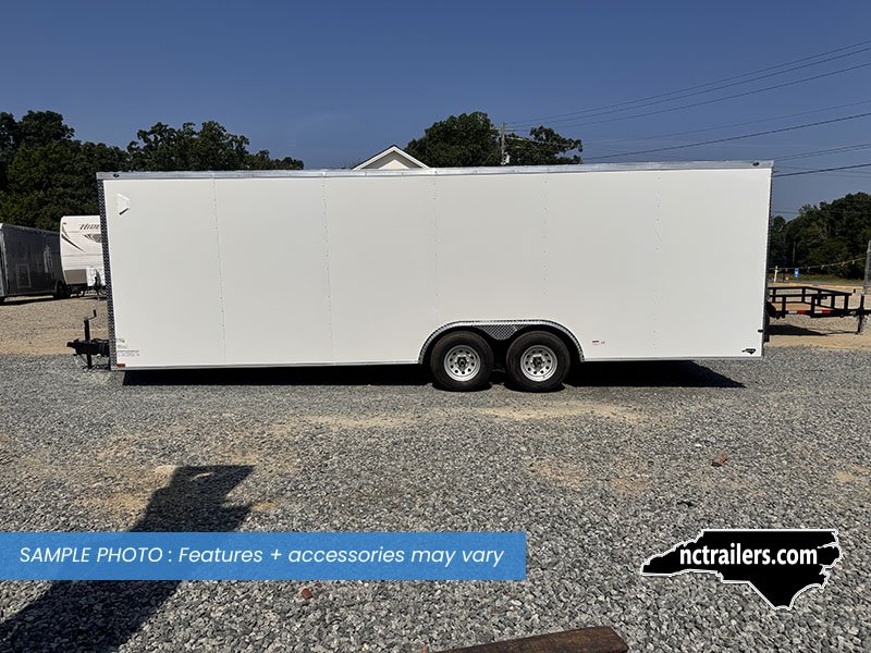 This v-nose 8.5x24 enclosed cargo trailer has a 6'6"" interior height, tandem axles with brakes with a rating of 10,000 lb GVWR. This type of trailer is ideal for light-duty or residential tasks. This model has a side door, a rear ramp door, and a 2000 lb jack.