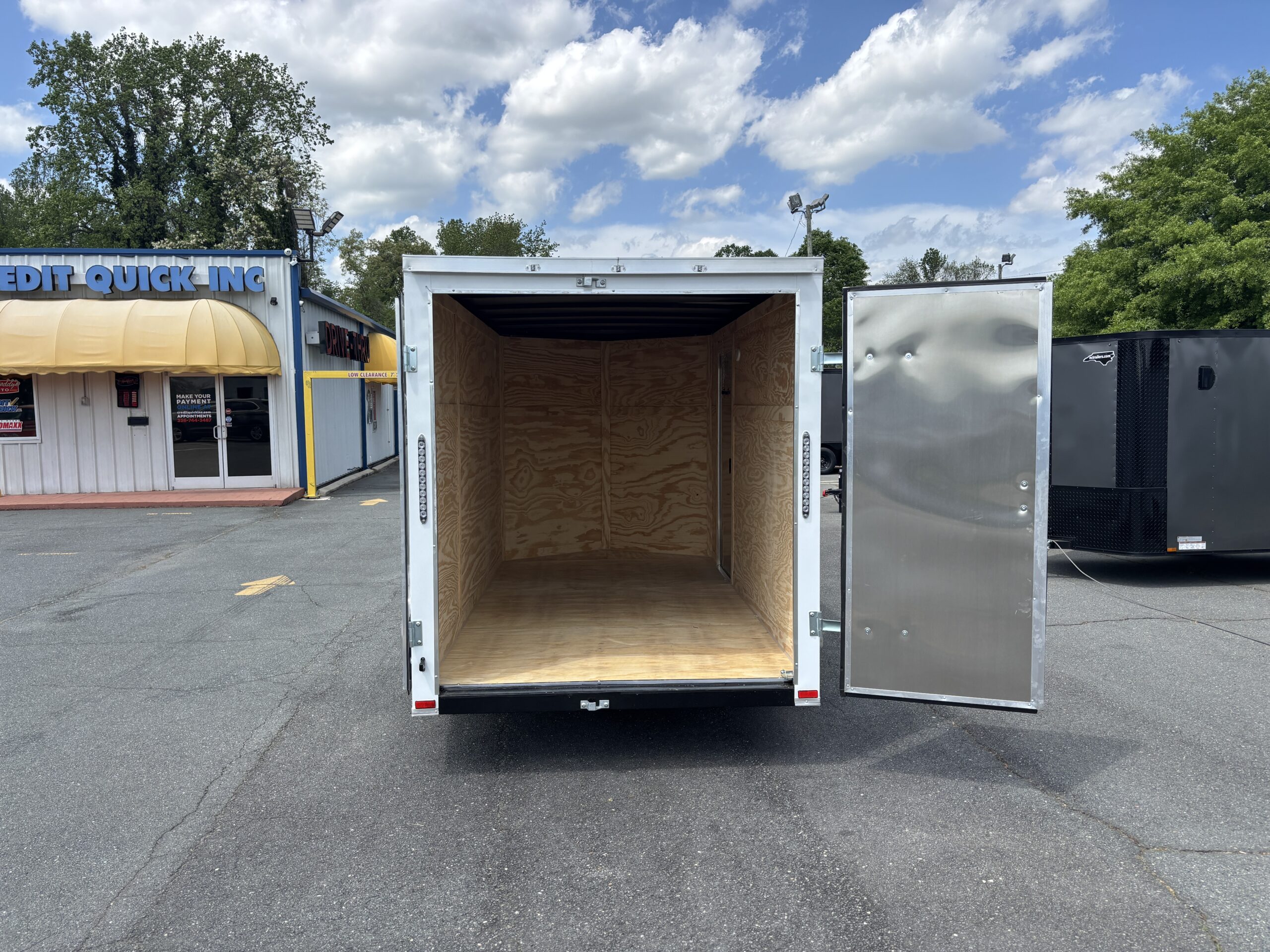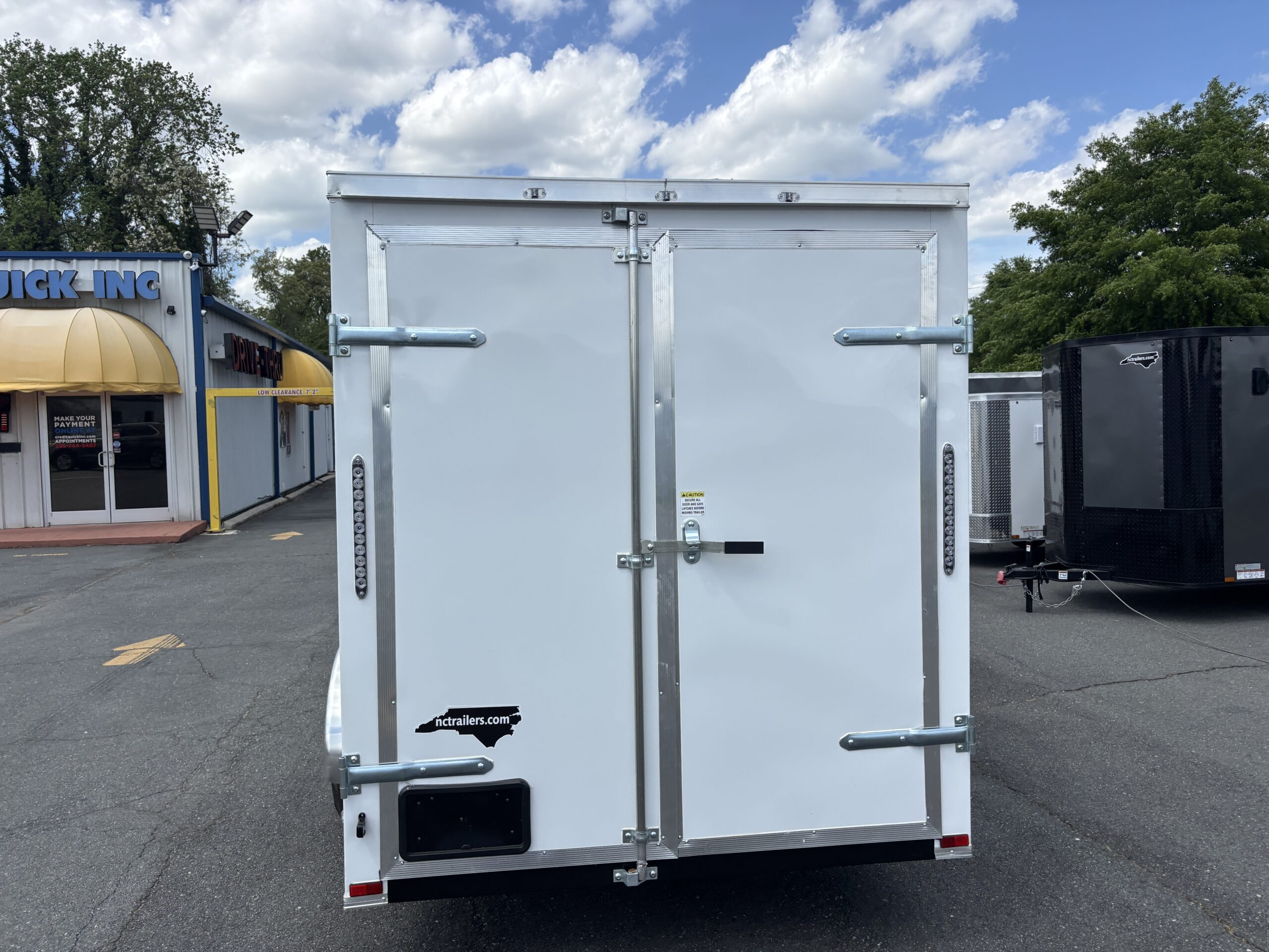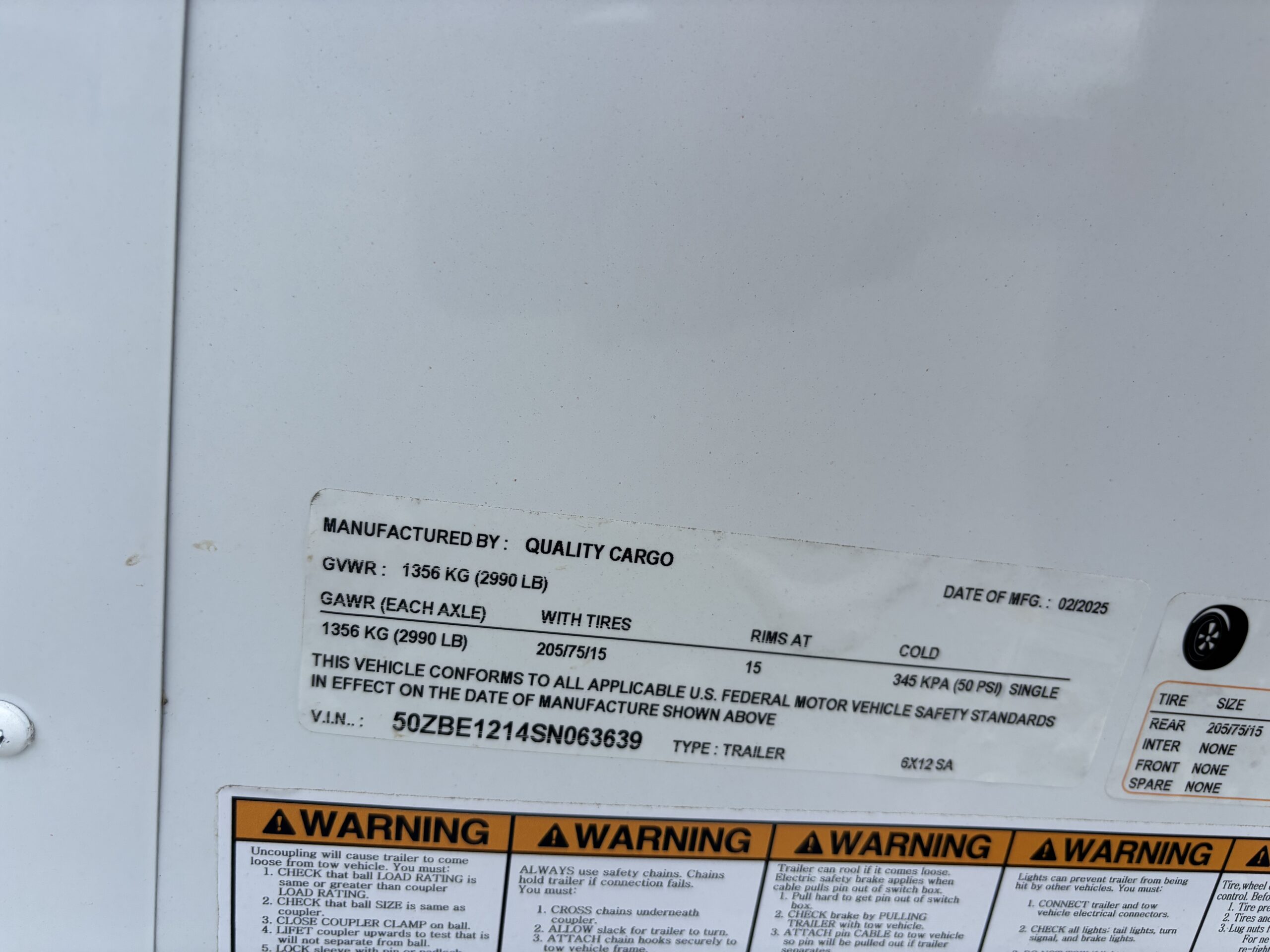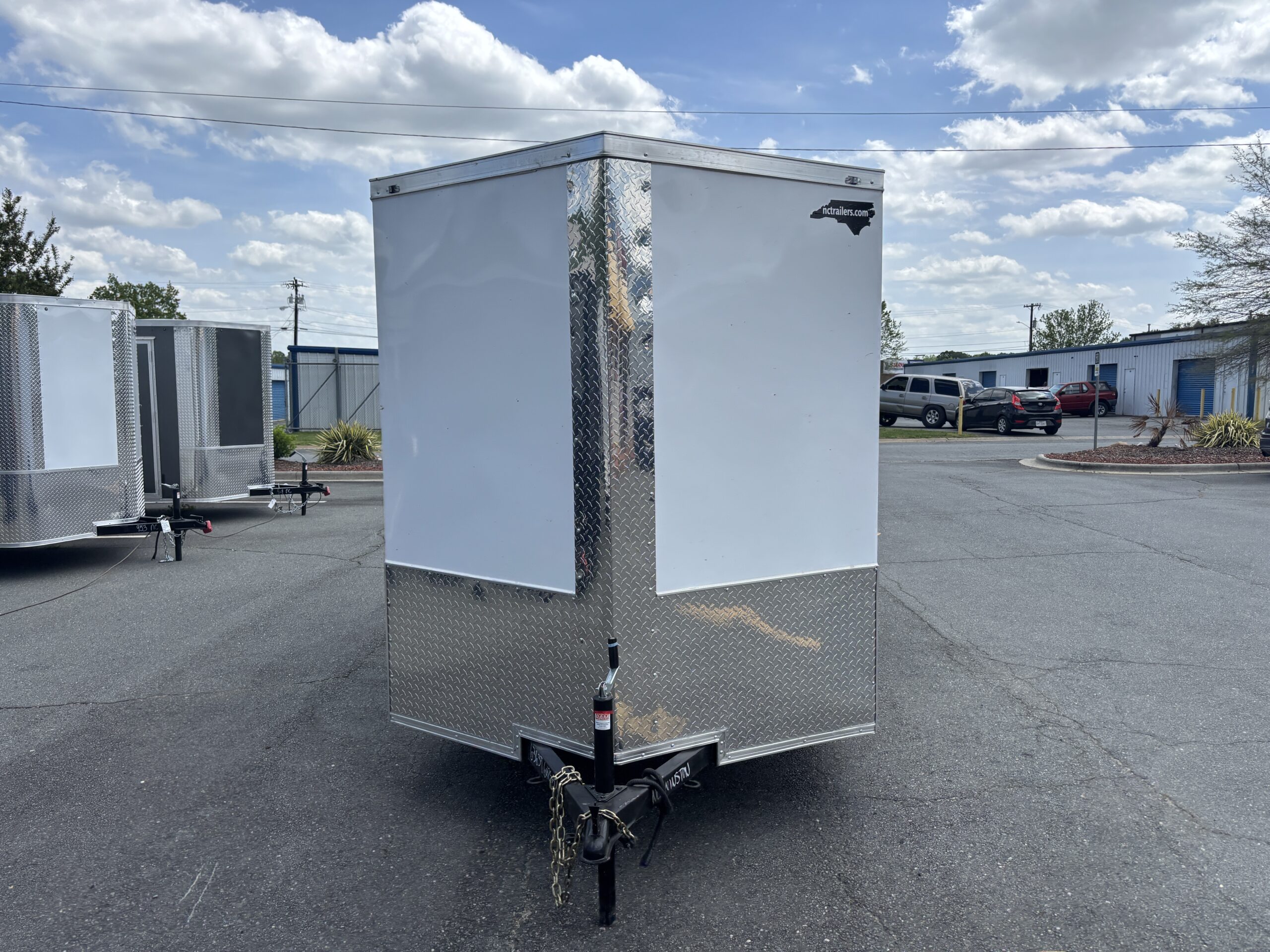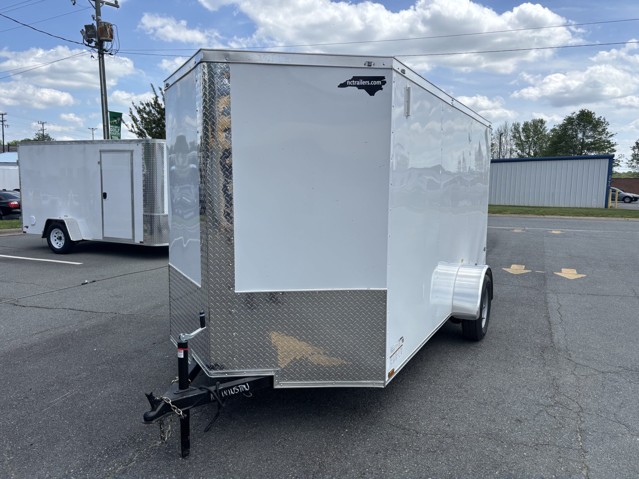 This v-nose 6x12 enclosed cargo trailer has a single non-braking idler axle with a rating of 2,990 lb GVWR. This type of trailer is ideal for light-duty or residential tasks. This model has a side door, rear barn doors, and a 2000 lb jack.