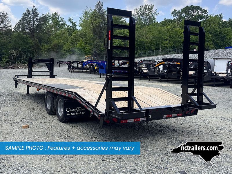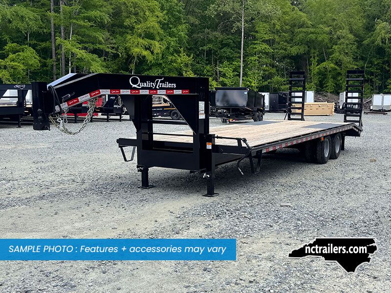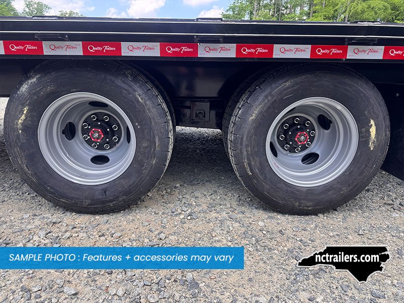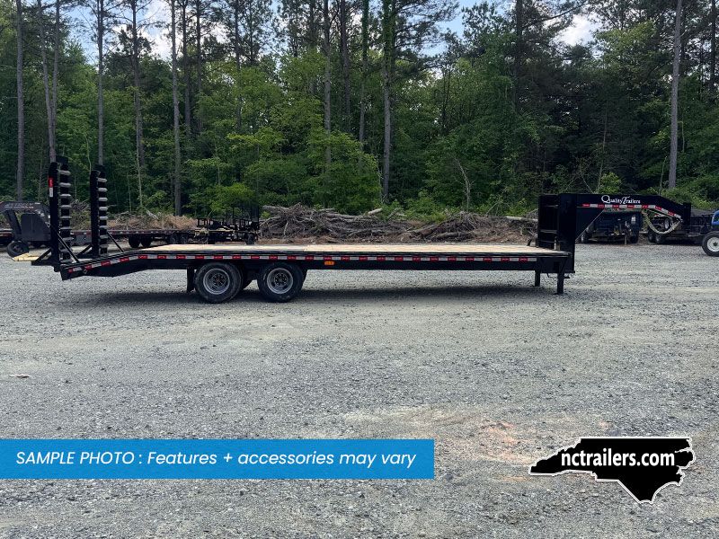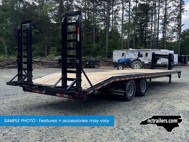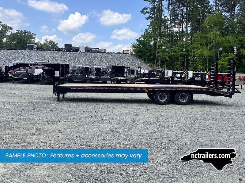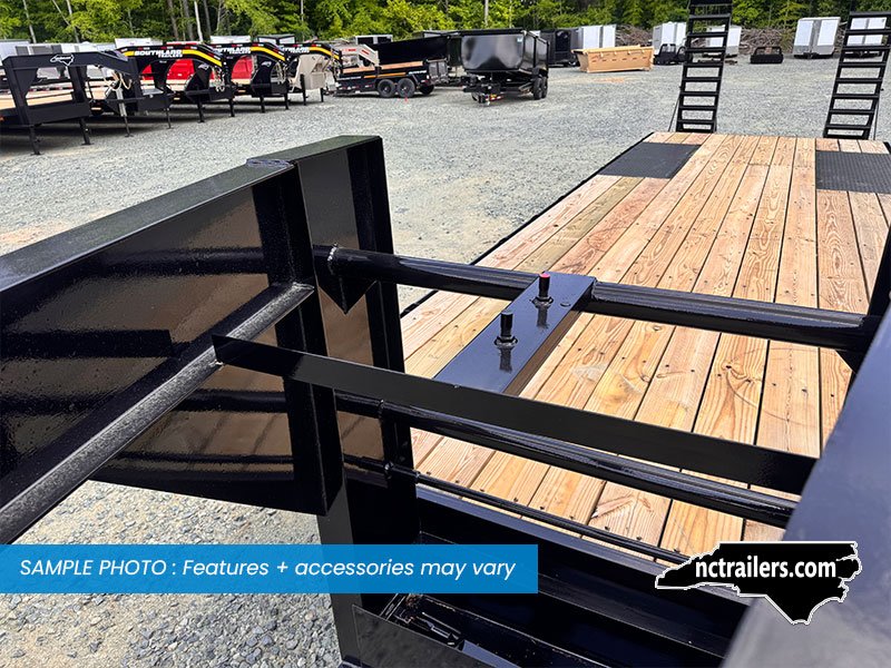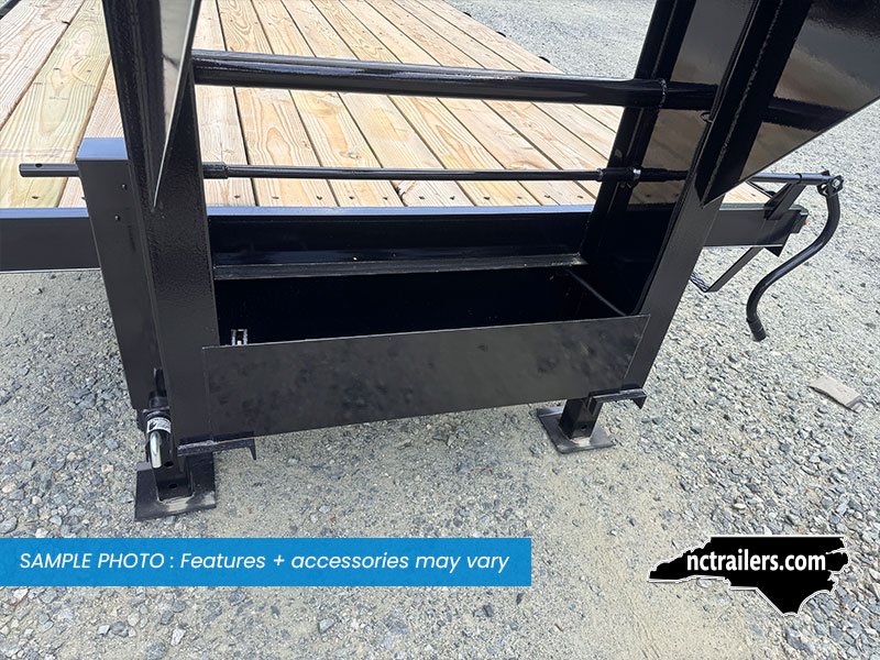 This medium-duty 22K GVWR tandem dual gooseneck trailer has a 24′ flatbed with a 4′ dovetail. Two 10,000 lb. oil bath electric brake axles with heavy-duty slipper spring suspension and 16″ tires. This model features conventional wiring with sealed beam lights. A heavy-duty 12K drop foot jack, tool tray with lockable lid, stake pockets with rub rail, treated flooring, and an adjustable 2 5/16″ gooseneck coupler.
