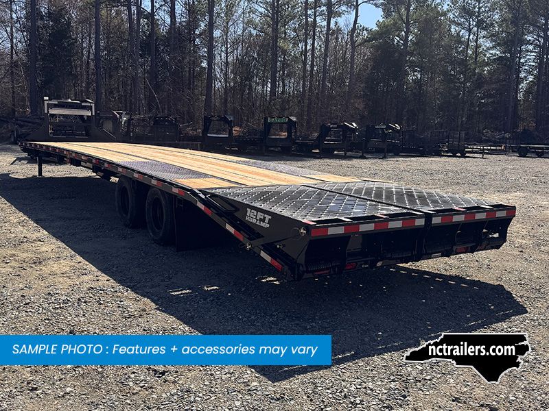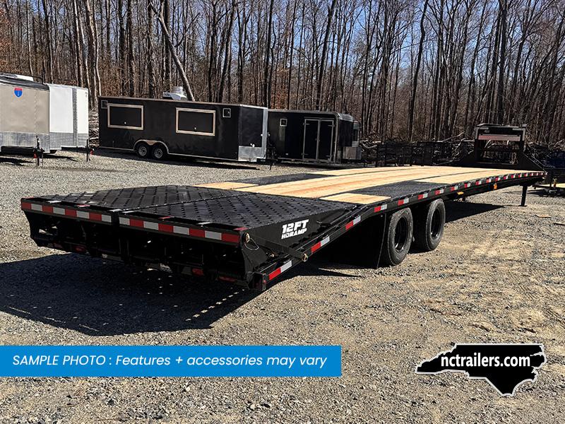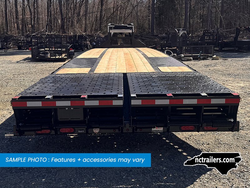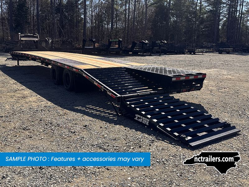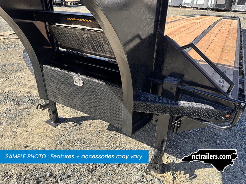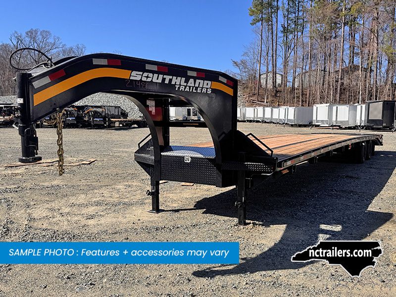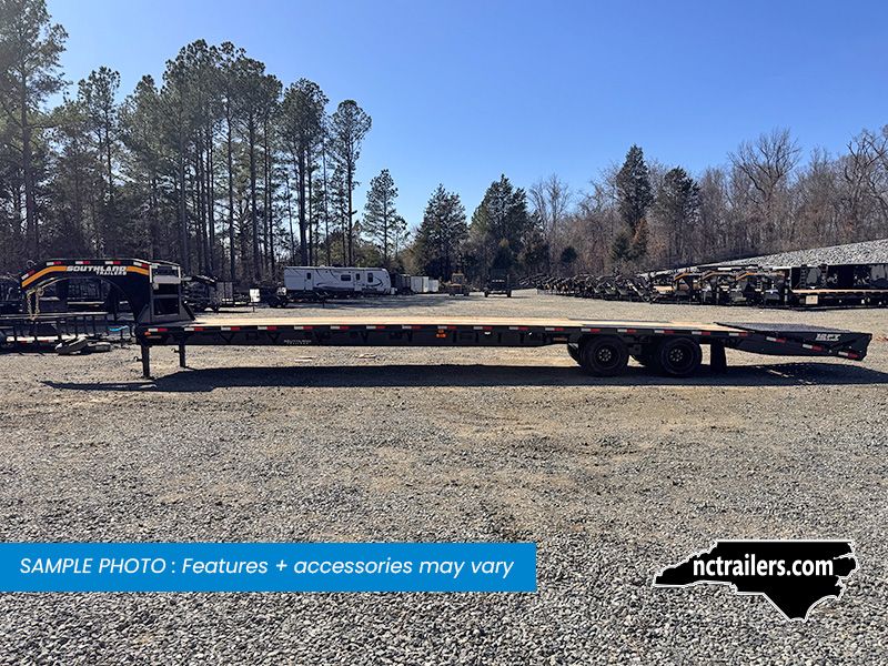 The Southland ETGT Engineered Gooseneck Deckover Trailer is a top of the line engineered Gooseneck AND engineered frame. This unit has dual tandem 10K axles, with 25,900K GVWR. Main beam is engineered and robotically welded (high tensile steel). Engineered one piece continuous weld 90ksi gooseneck. Low profile bed with 90ksi Engineered Pierced-Beams and S3.0” x 2.9 lb. High Tensile 80ksi Super Lite I-Beams. 6’ Beavertail with 6' HD ramps. Lockable toolbox, winch plate, locking chain rail, rub rails with chain spools and stake pockets. 14K bolt-on hydraulic jack.