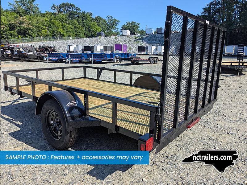 This standard 12-foot length utility/landscape trailer has a 76" width ideal for home and garden tasks. GVWR rating of 3,000 lb. This trailer features a top rail, 48" heavy-duty landscape gate, one 3,500 lb Idler axle, and a LED lighting package.