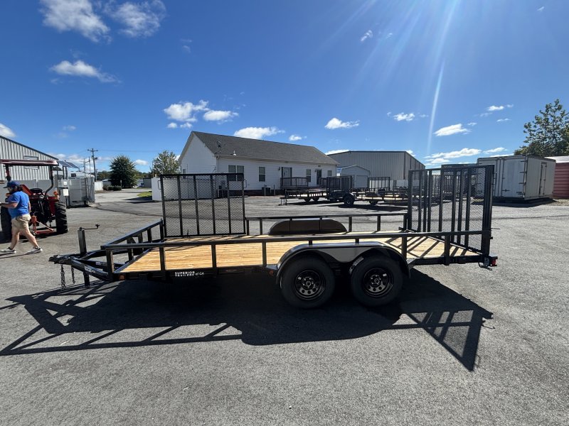 This HD 16-foot length utility/landscape trailer has a generous 72" width ideal for home and garden tasks. GVWR rating of 7,260 lb. This trailer features 12" top rail, 48" heavy-duty landscape gate, a side gate and two 3,500 lb brake axles, and a LED lighting package.