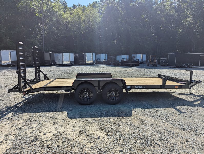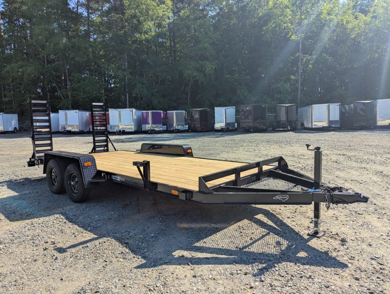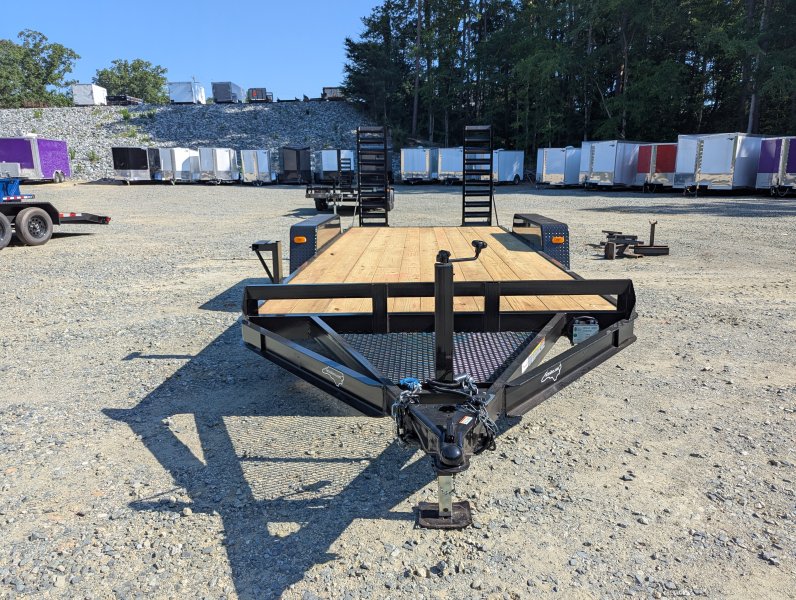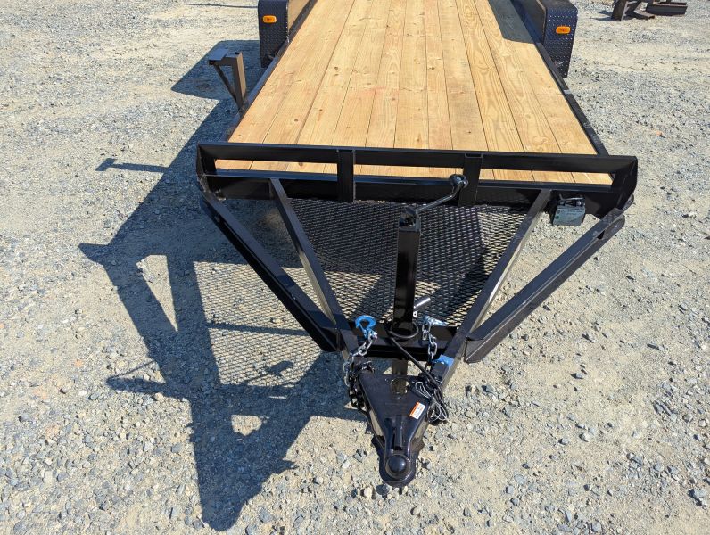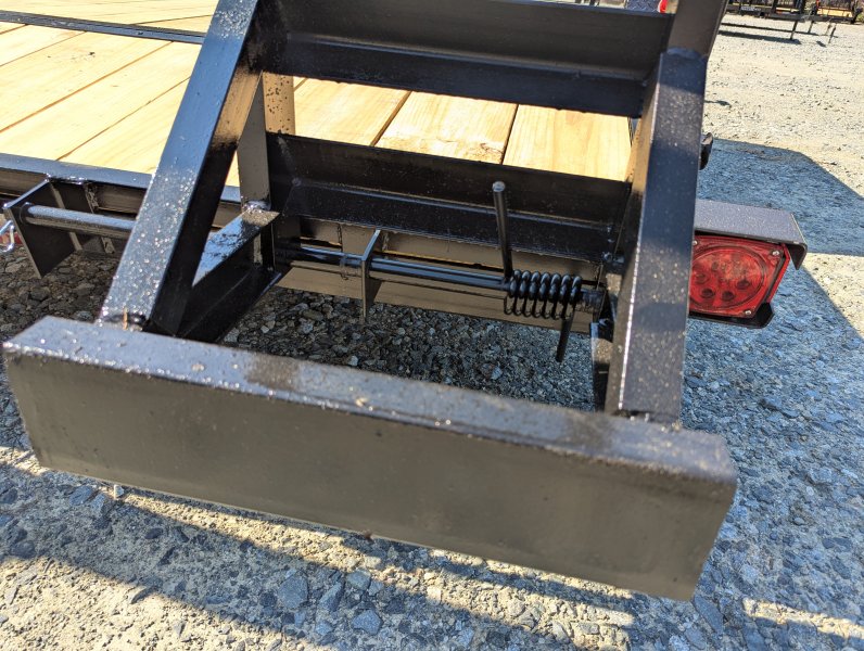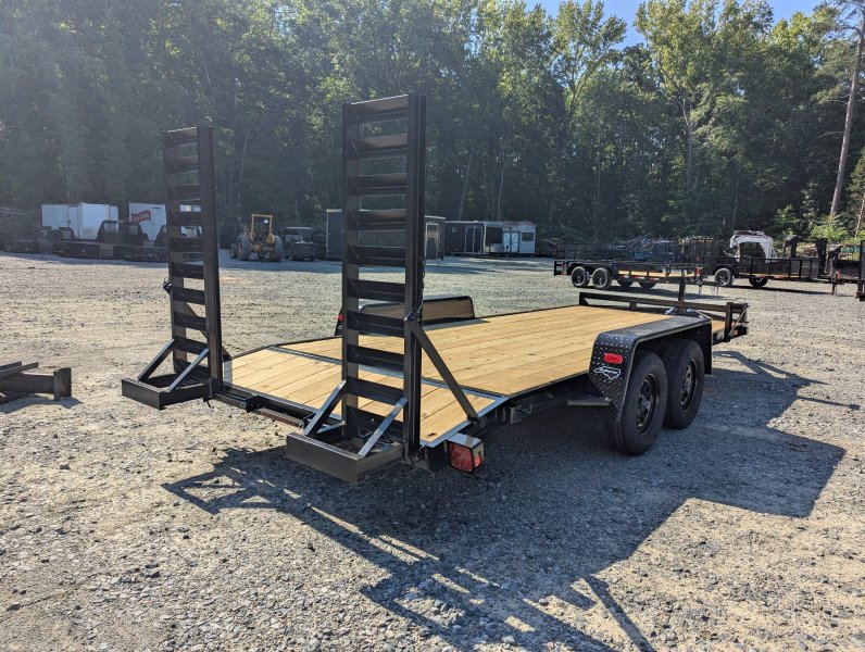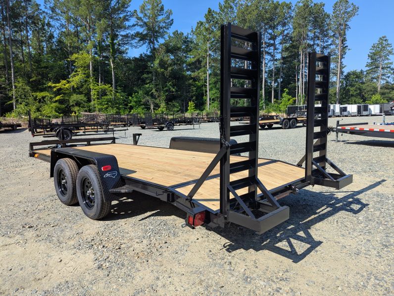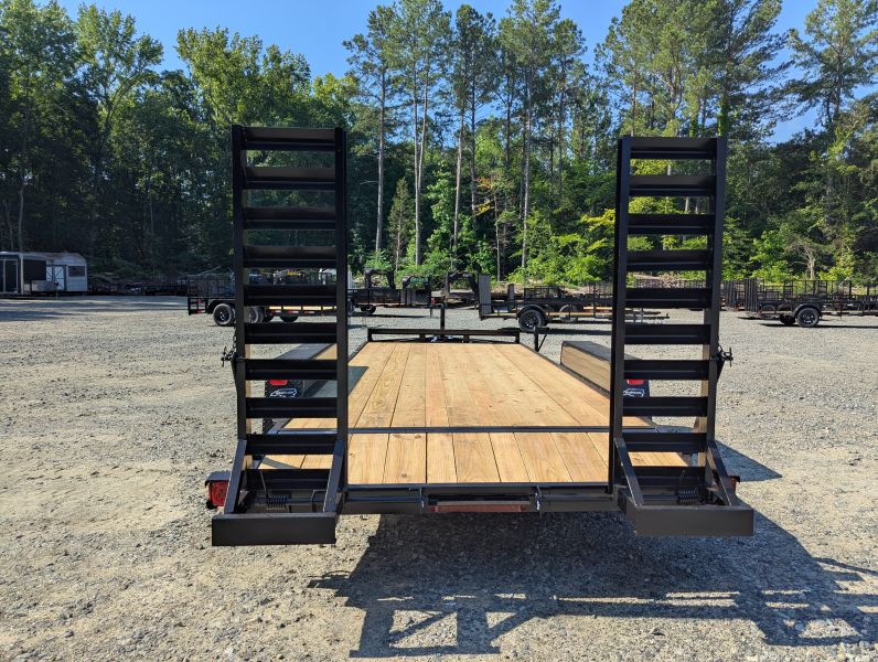This standard equipment trailer comes with two 3,500 lb axles, 78" wide deck (between the fenders), a dovetail, and fold-down ladder ramps.