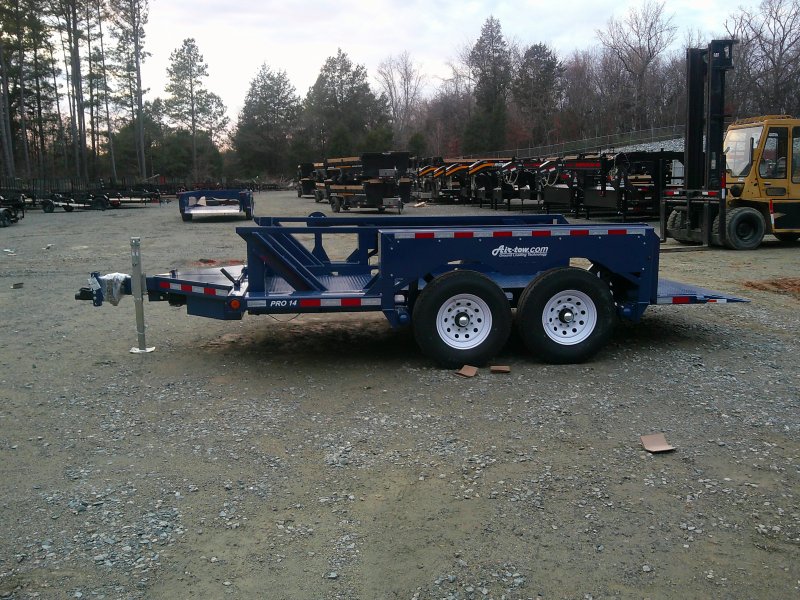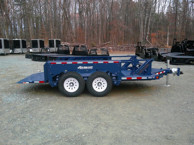 This 75" wide x 14' long drop deck trailer from Air Tow has tandem axles with a rubber suspension and electric brakes. These units come standard with: