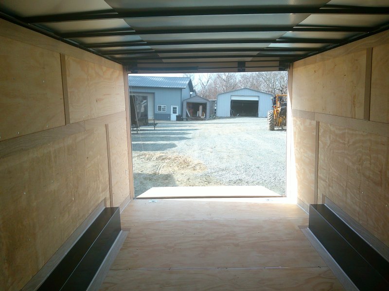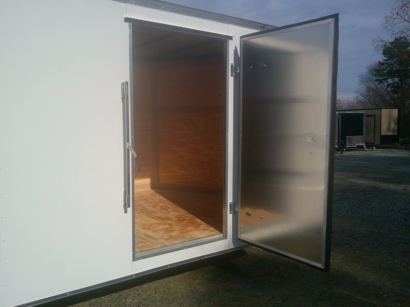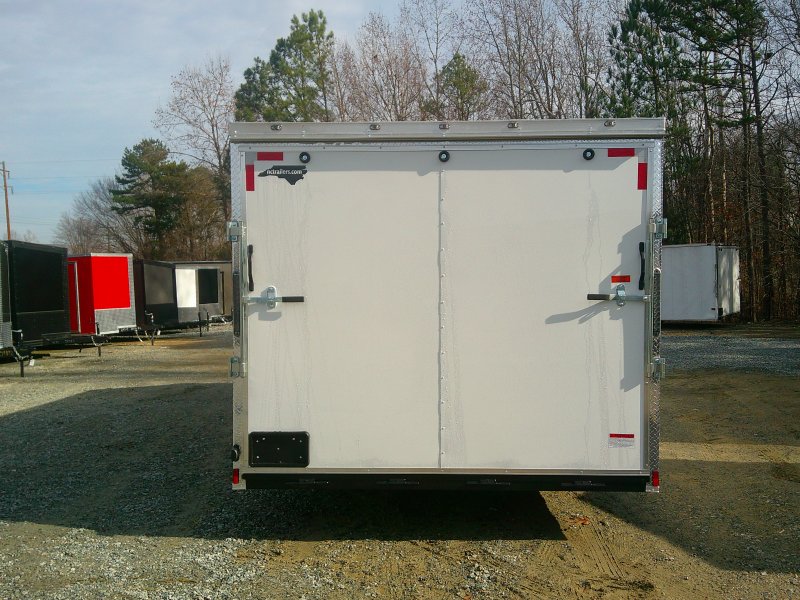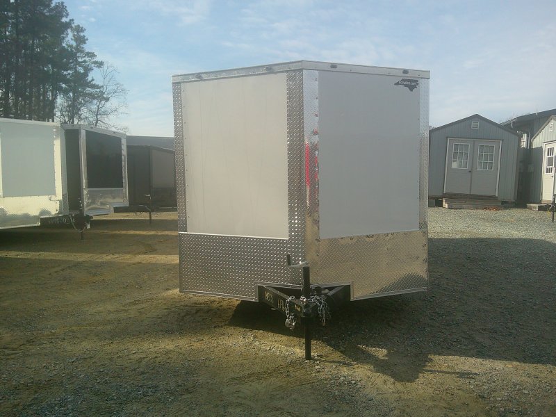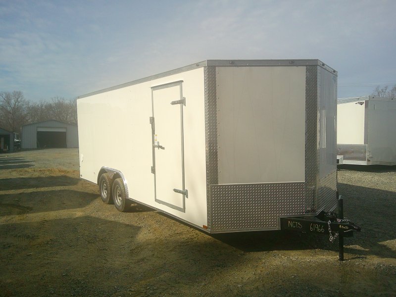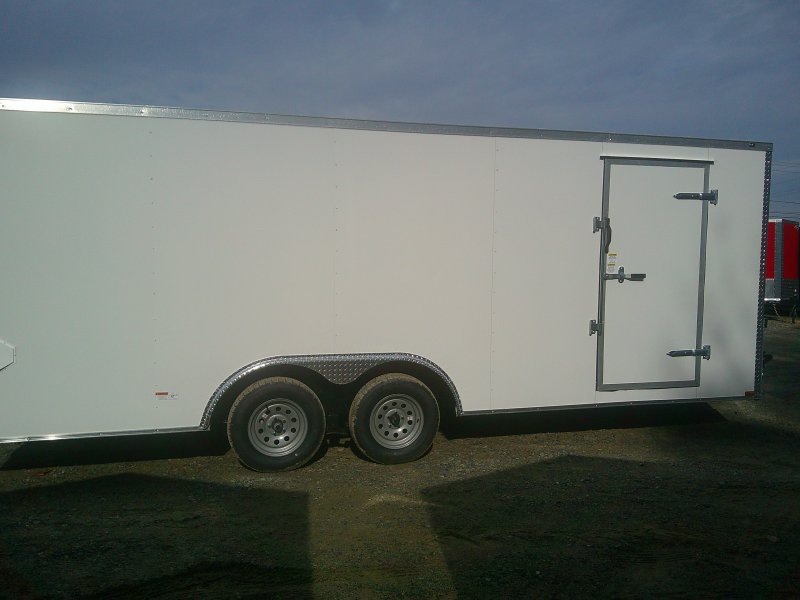 This v-nose 8.5x20 enclosed cargo trailer has a 7' interior height, tandem axles with brakes with a rating of 7,000 lb GVWR. This type of trailer is ideal for light-duty or residential tasks. This model has a side door, a rear ramp door, and a 2000 lb jack.