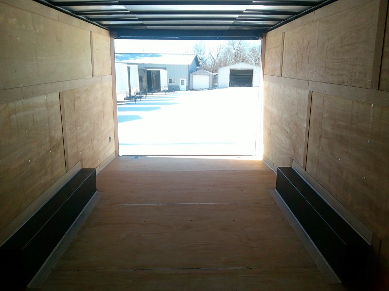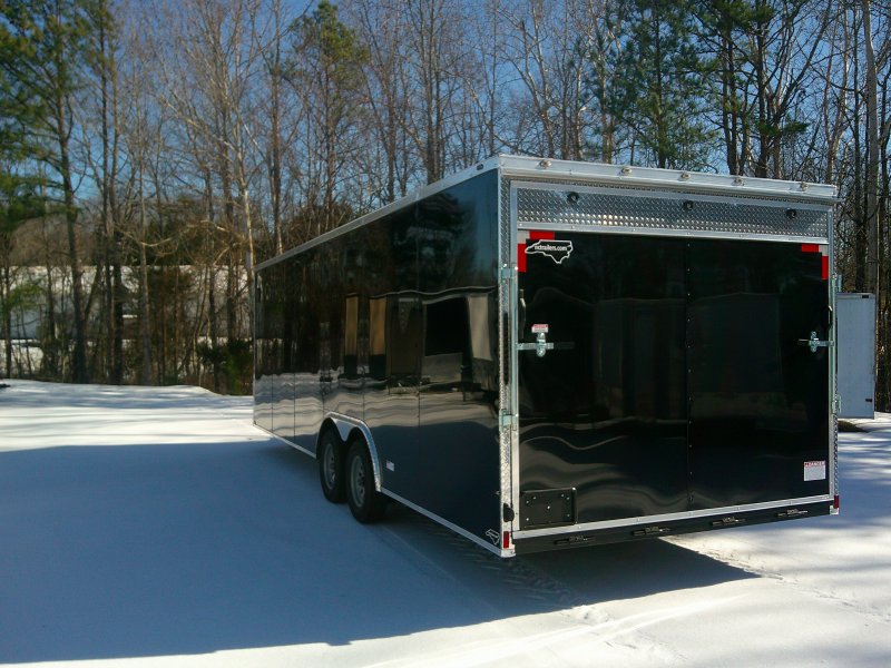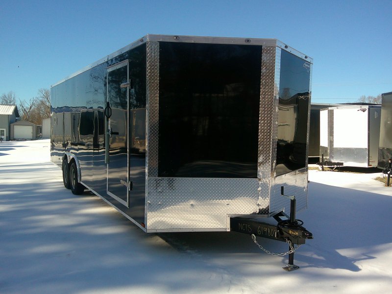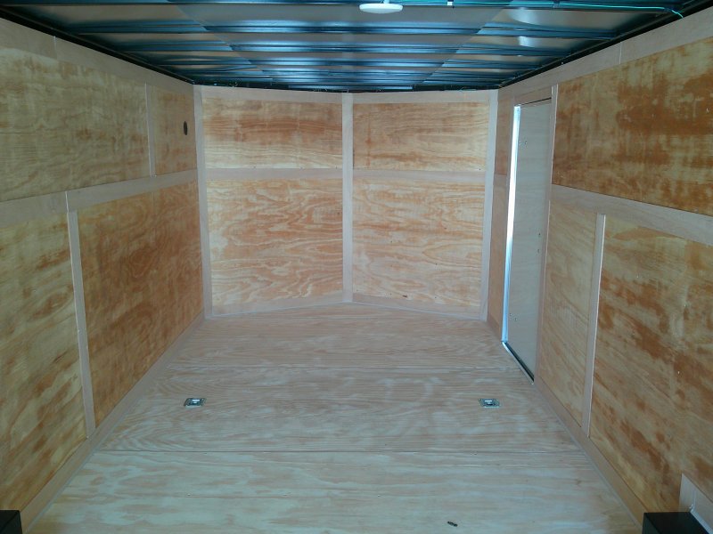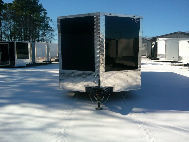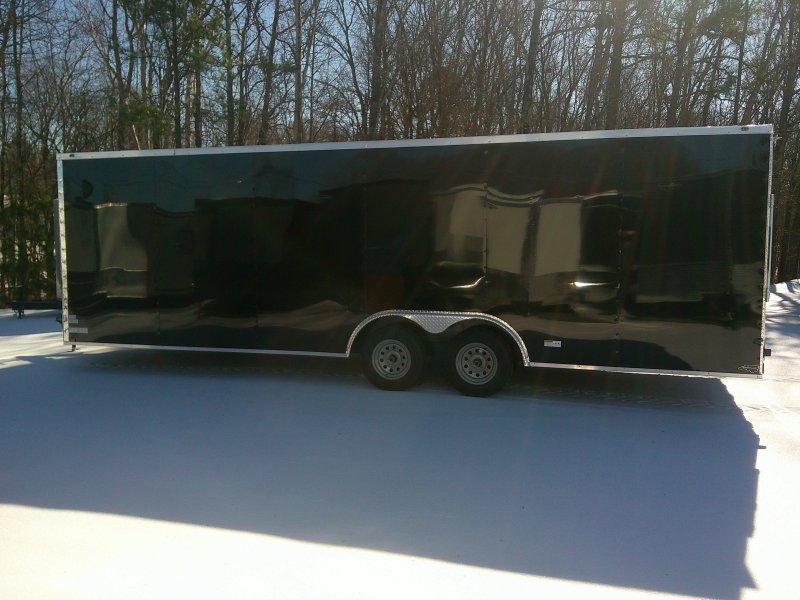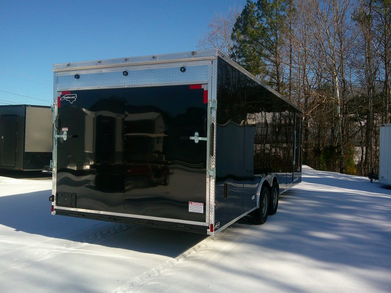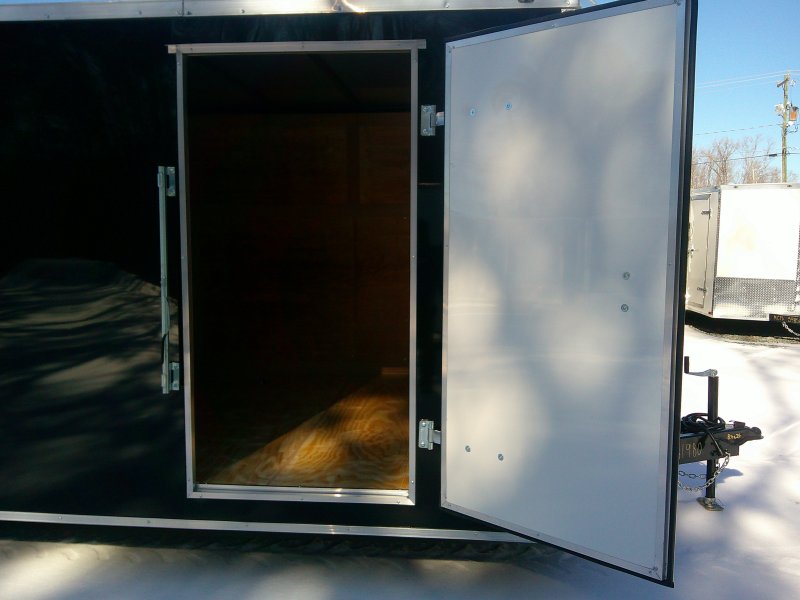 This v-nose 8.5x24 enclosed cargo trailer has a 6'6" interior height, tandem axles with brakes with a rating of 7,000 lb GVWR. This type of trailer is ideal for light-duty or residential tasks. This model has a side door, a rear ramp door, and a 2000 lb jack.