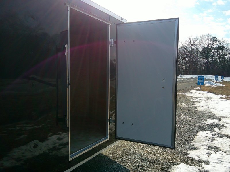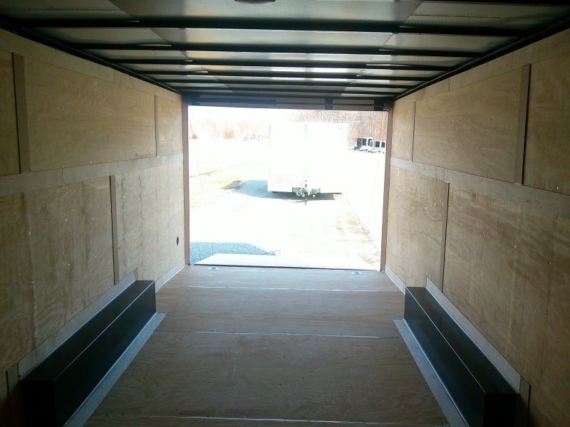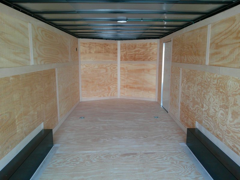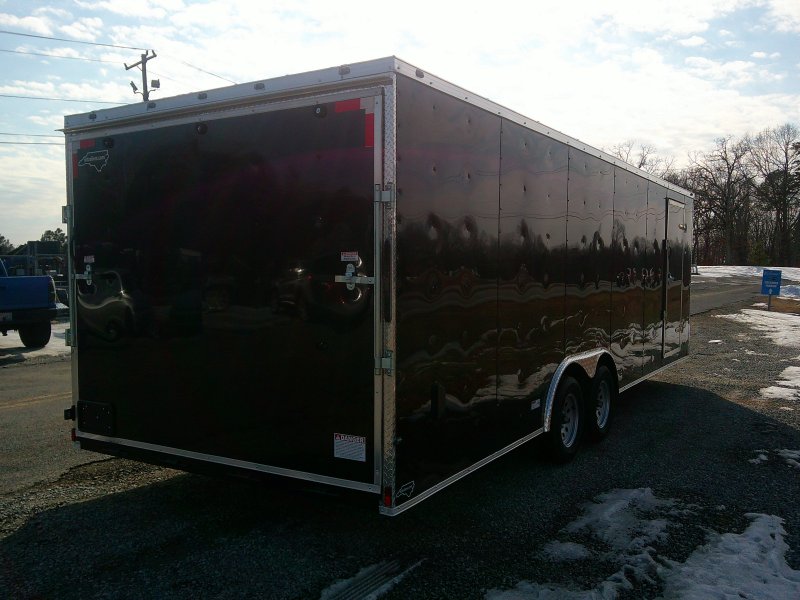 This v-nose 8.5x24 enclosed cargo trailer has a 6'6" interior height, tandem axles with brakes with a rating of 7,000 lb GVWR. This type of trailer is ideal for light-duty or residential tasks. This model has a side door, a rear ramp door, and a 2000 lb jack.