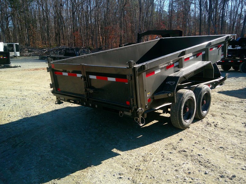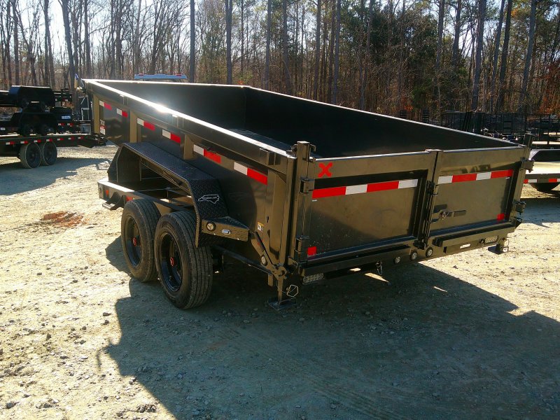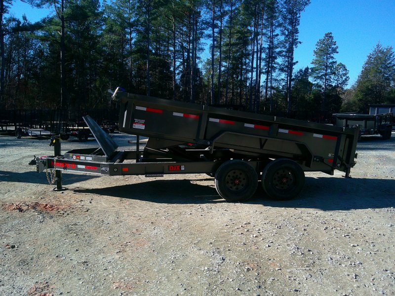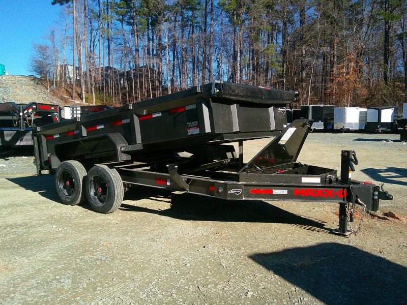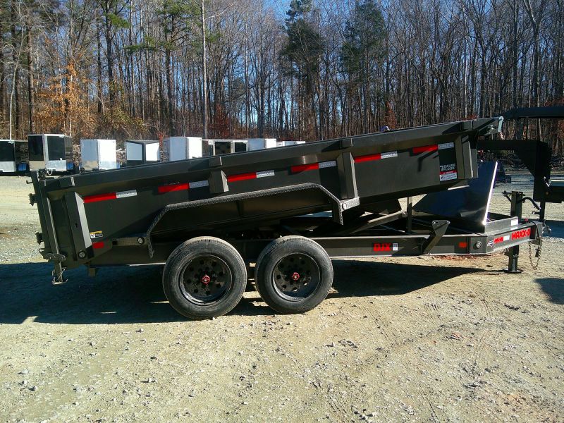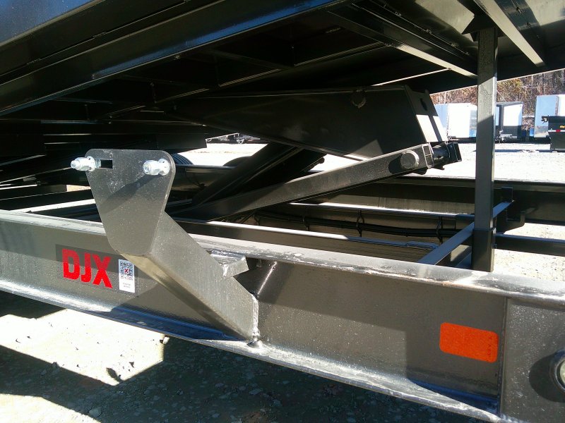 This MAXX-D DJK 84x14 dump trailer comes with 7' slide-in ramps, tarp kit, wireless remote, Noco battery chargers, combo gate, and rear support stands. This dump trailer has an 84"" box with 24"" tall sides and no stick bottom corners. 7 gauge floor, 10 gauge walls. The dump trailer is a scissor lift hydraulic hybrid.