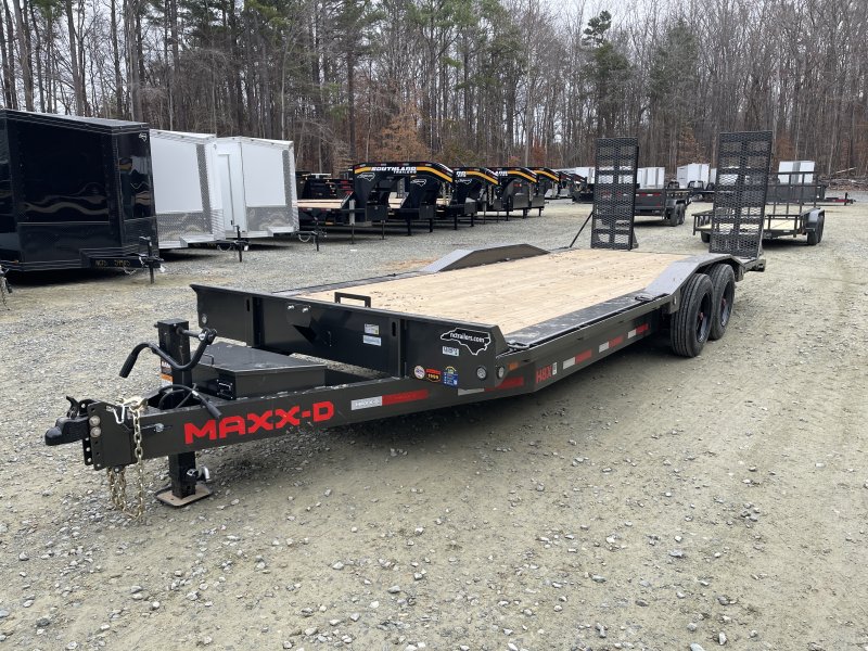 This MAXX-D H8X equipment trailer has 17.5K GVWR, 102"" wide x 22' long deck with drive over fenders, 2' dovetail and two fold-down ladder ramps.