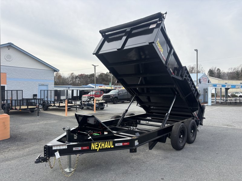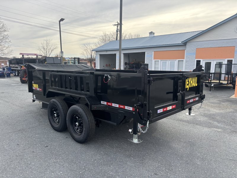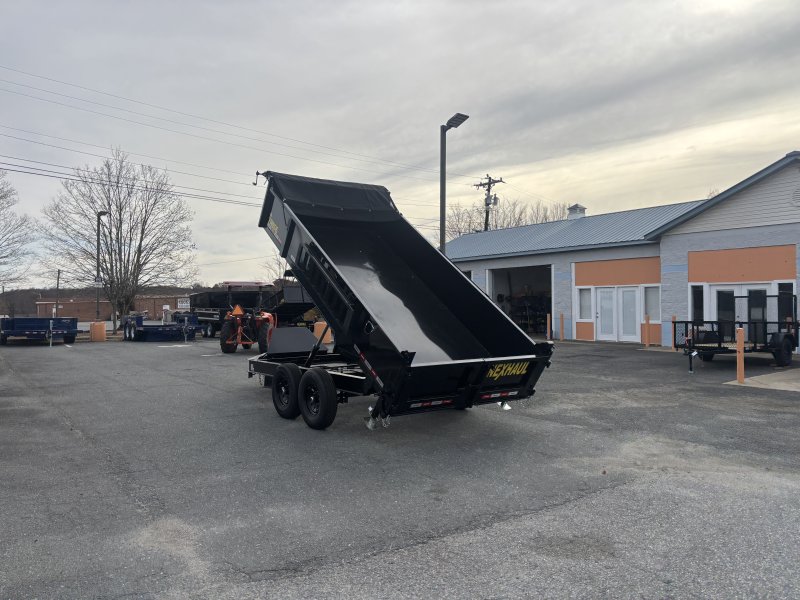 This deluxe 84x14 dump trailer comes with ramps. This dump trailer has a front box with 24"" tall sides and side mount ramps. The dump trailer is a dual cylinder hydraulic piston lift. Also includes a combo spreading and split gate.