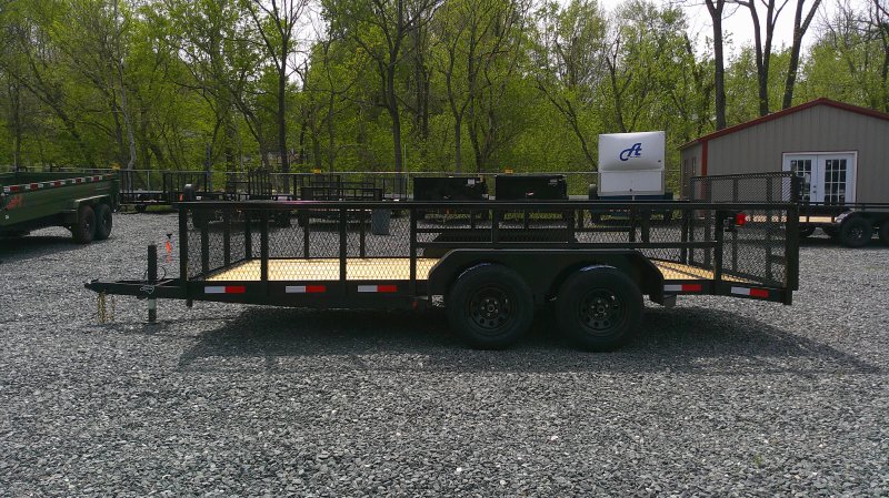 "This standard 16-foot length utility/landscape trailer has a generous 84"" width ideal for home and garden tasks. GVWR rating of 7,000 lb. This trailer features 24"" mesh sides, 48"" heavy-duty landscape gate, two 3,500 lb brake axles, and a LED lighting package.