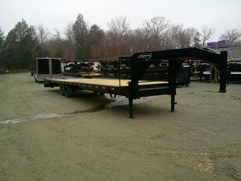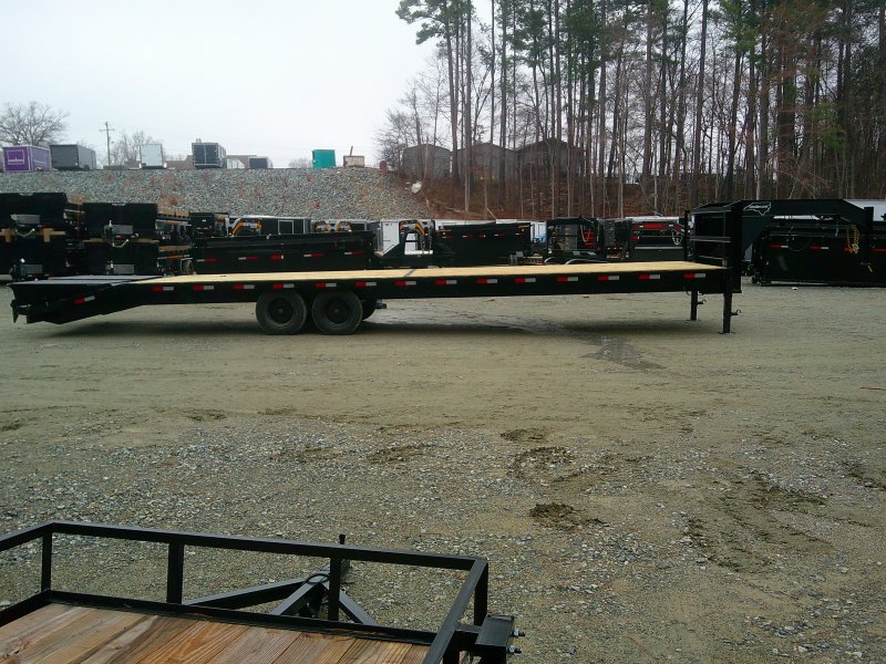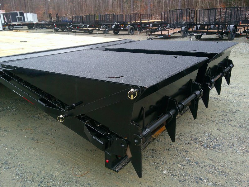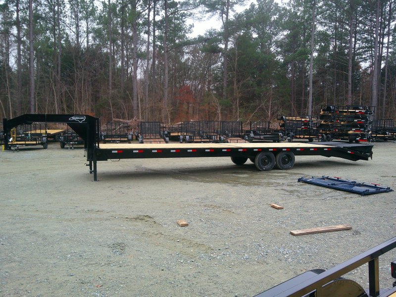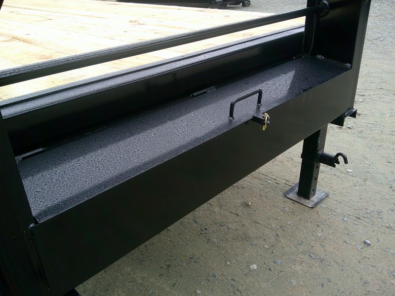 This medium-duty 14K GVWR gooseneck trailer has a 35′ flatbed with a 4′ Self cleaning dovetail with mega ramps. Two 8,000 lb. electric brake axles with heavy-duty slipper spring suspension and 16″ tires. This model features conventional wiring with sealed beam lights. A heavy-duty 12K drop foot jack, tool tray with lockable lid, stake pockets with rub rail, treated flooring, and an adjustable 2 5/16″ gooseneck coupler.