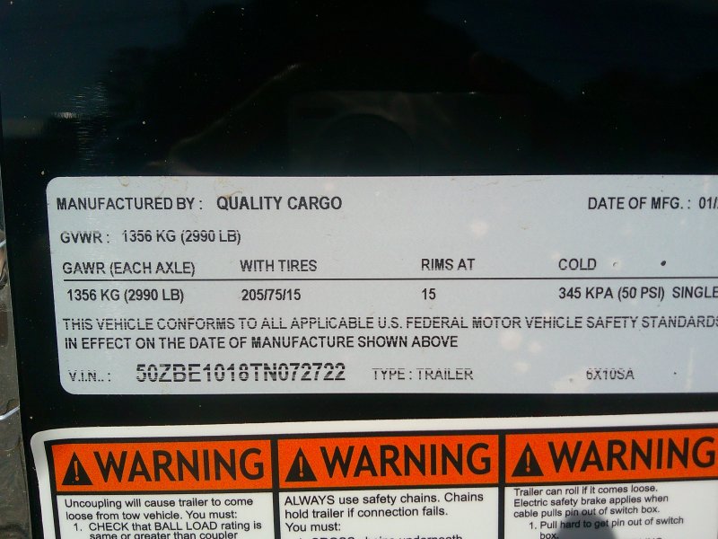 This v-nose 6x10 enclosed cargo trailer has a single non-braking idler axle with a rating of 2,990 lb GVWR. This type of trailer is ideal for light-duty or residential tasks. This model has a side door, a rear ramp door, and a 2000 lb jack.
