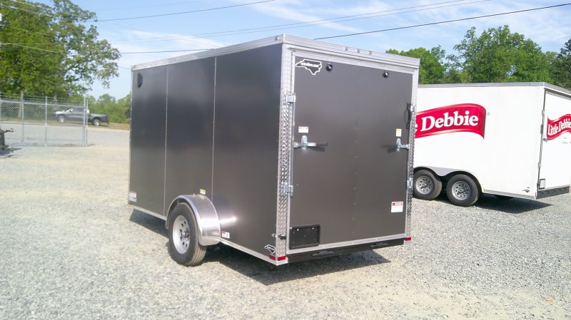This v-nose 6x12 enclosed cargo trailer has a single non-braking idler axle with a rating of 2,990 lb GVWR. This type of trailer is ideal for light-duty or residential tasks. This model has a side door, a rear ramp door, and a 2000 lb jack.