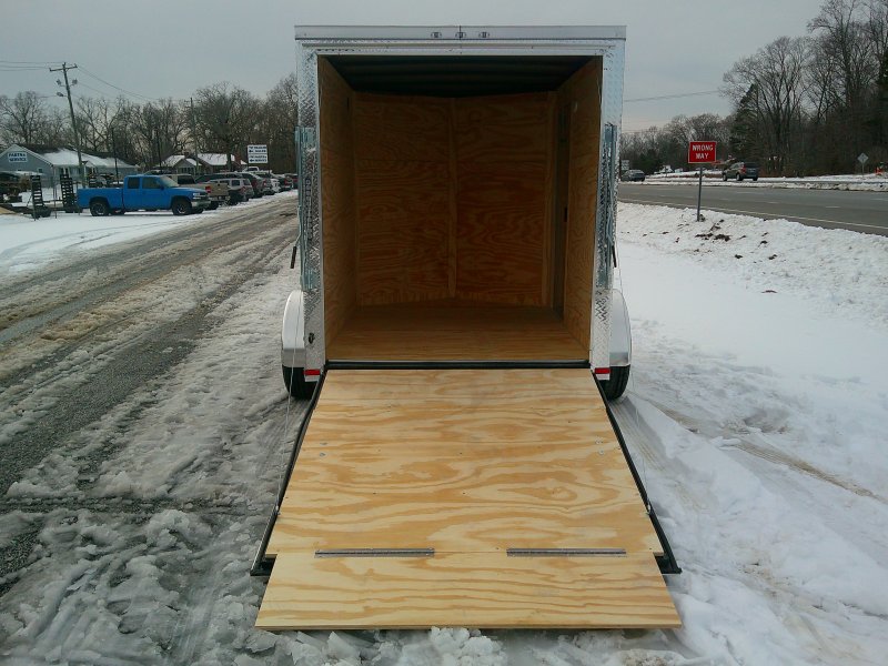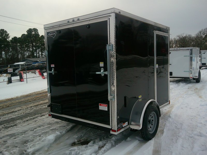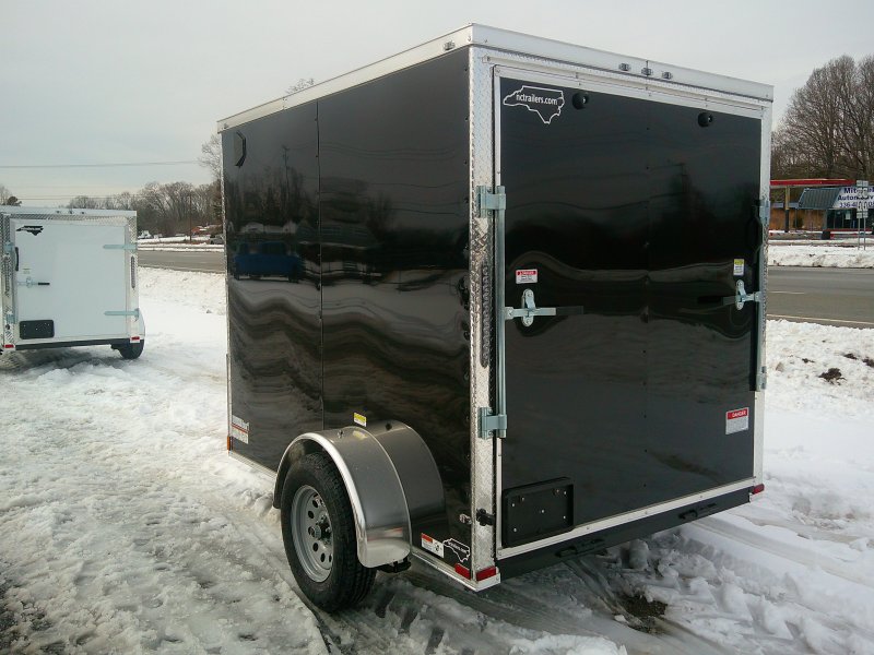 This v-nose 6x8 enclosed cargo trailer has a single non-braking idler axle with a rating of 2,990 lb GVWR. This type of trailer is ideal for light-duty or residential tasks. This model has a side door, a rear ramp door, and a 2000 lb jack.