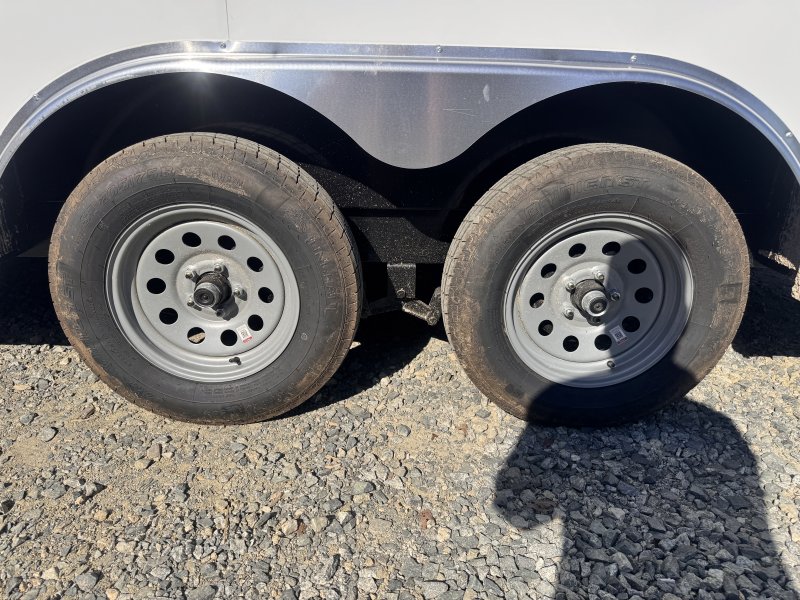 This v-nose 8.5x16 enclosed cargo trailer has a 7' interior height, tandem axles with brakes with a rating of 7,000 lb GVWR. This model has a side door, a 3x8 concession window, it's wired and braced for a/c, has a 50 amp electrical package and a 2000 lb jack.