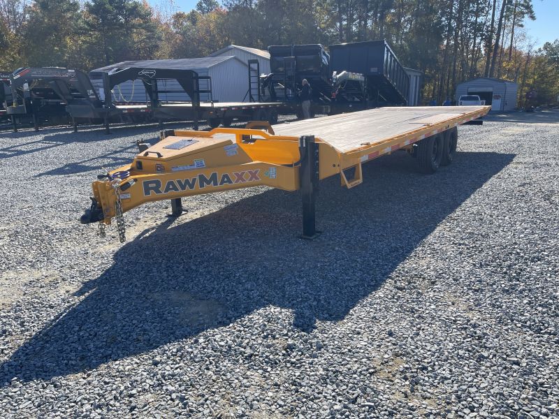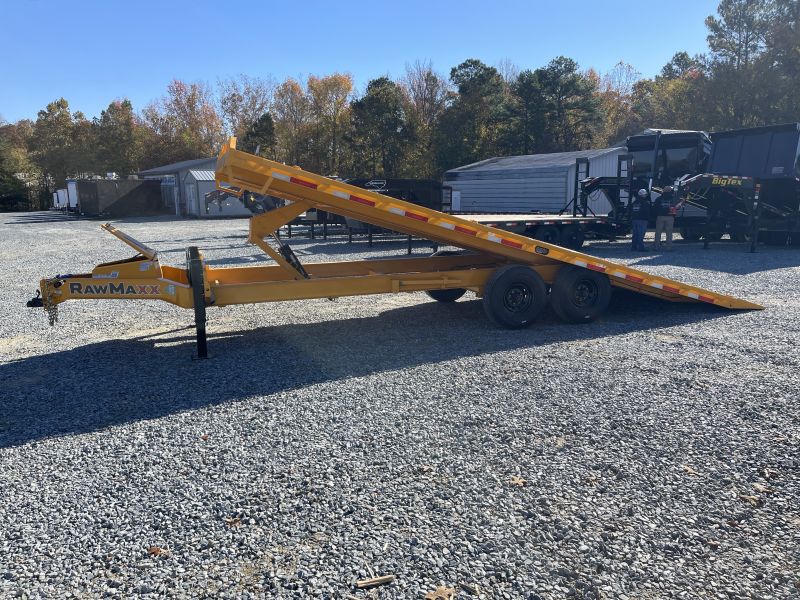 This RawMaxx DTX is a deck over Full Tilt Bed Equipment Trailer features a rear tilt deck as well as Pro Wood decking. This trailer offers two 8,000 lb electric brake hybrid torsion axles and a 16K GVWR. 8" I-beam, 16" on center cross members, 2" rub rail with spools, 16' hydraulic tilt deck, hydraulic jacks, and LED lights.