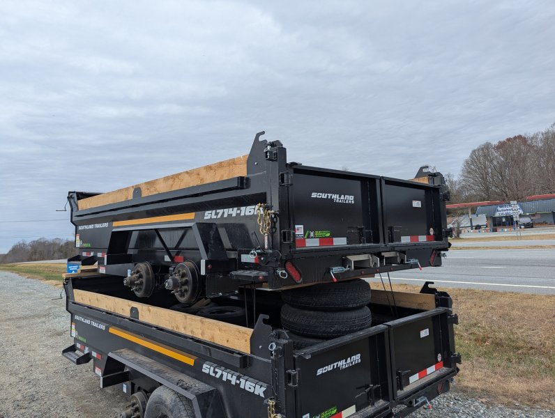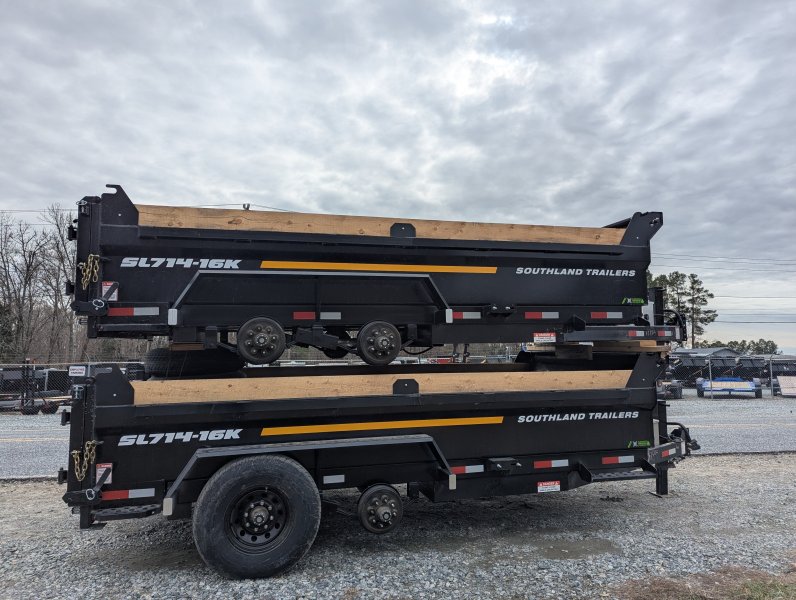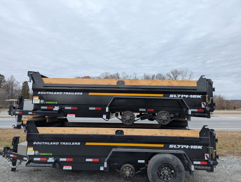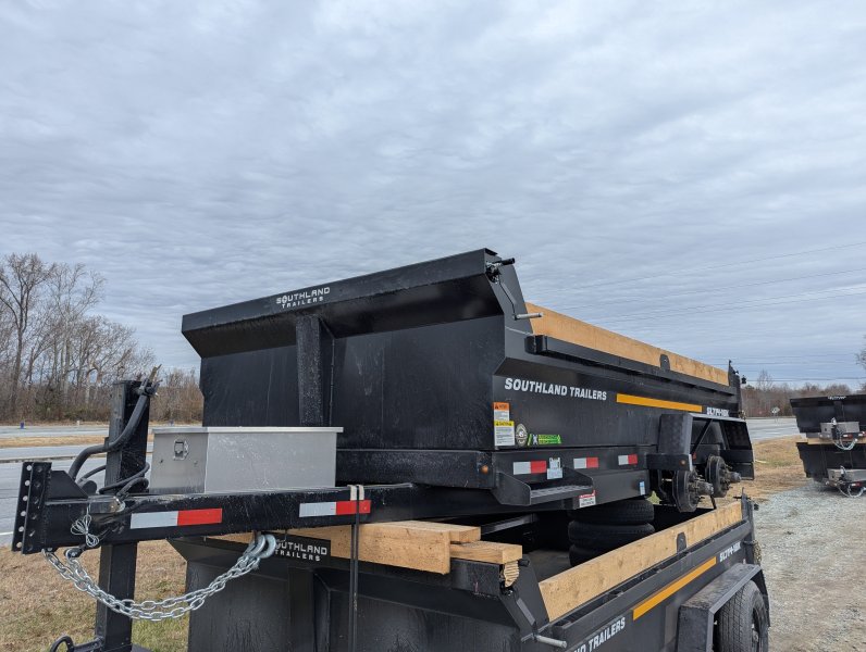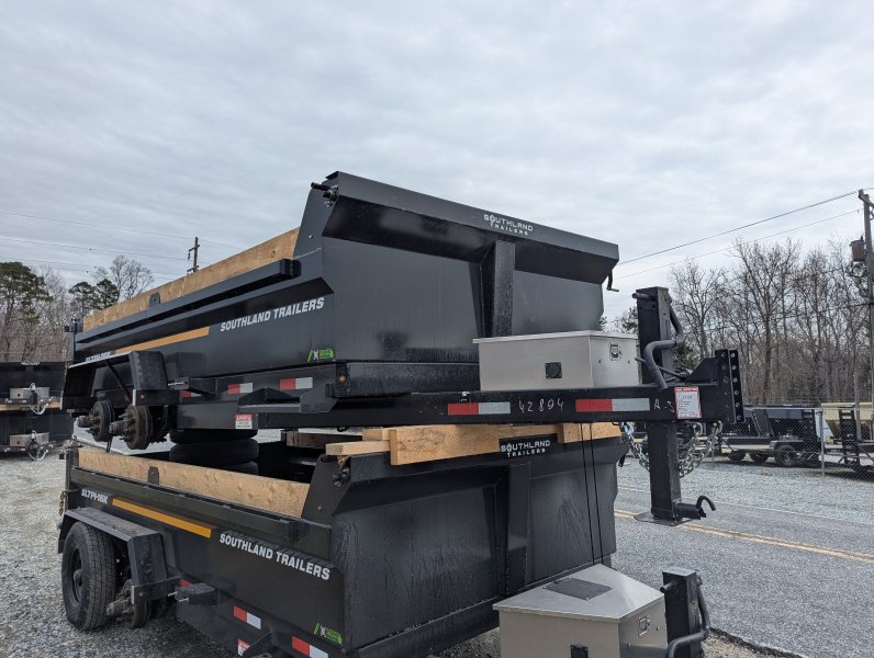 This deluxe 84x14 dump trailer comes with ramps. This dump trailer has an 84" box with 24" tall sides and no stick bottom corners. The dump trailer is a scissor lift hydraulic hybrid. Also includes light weight ramps.