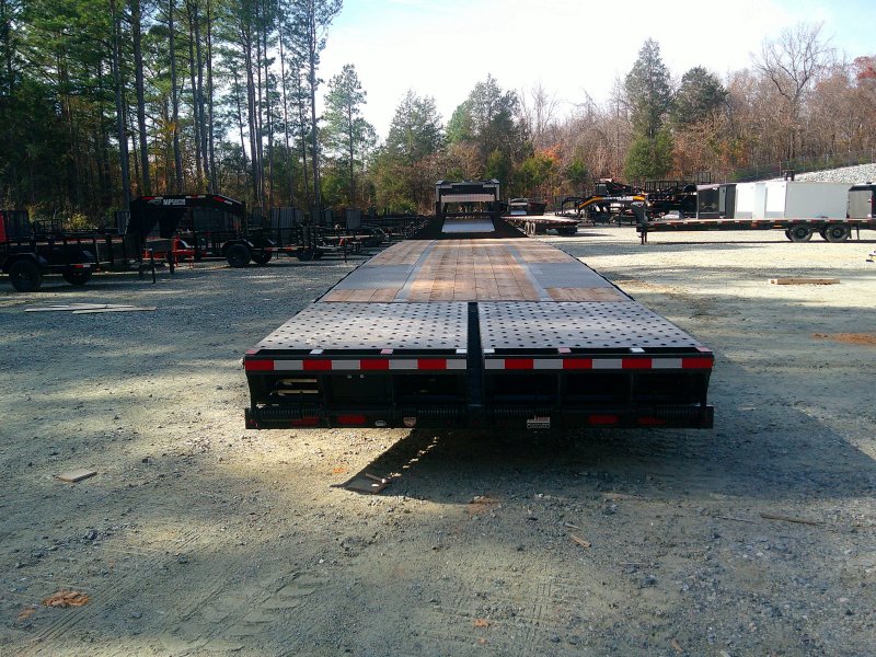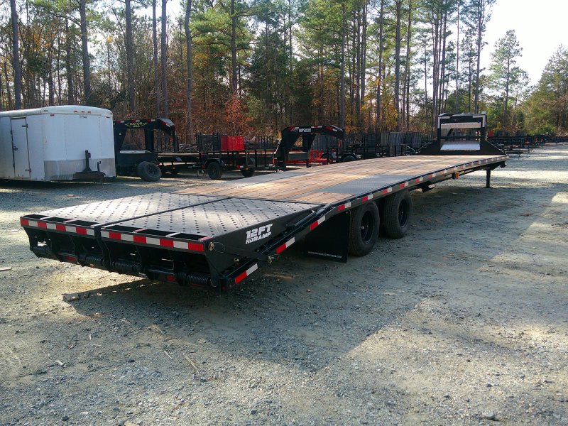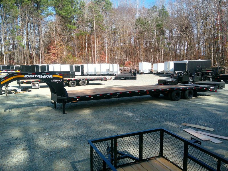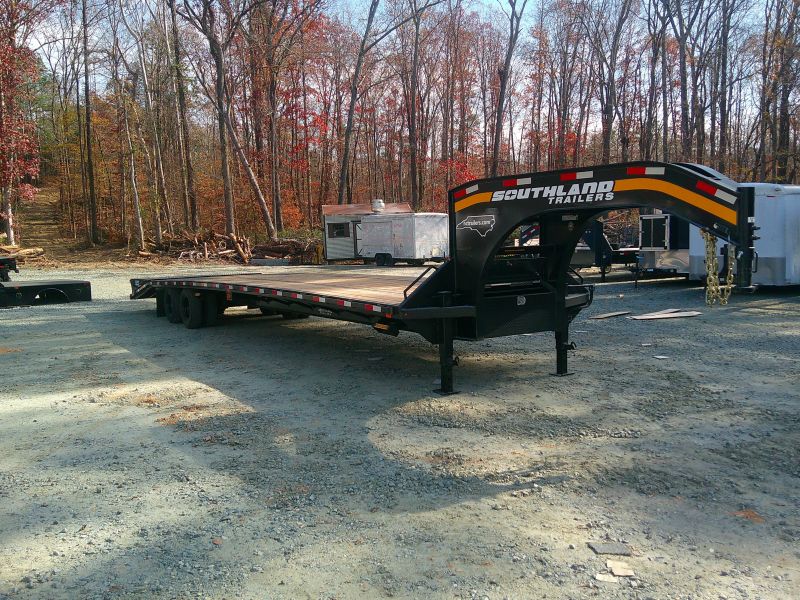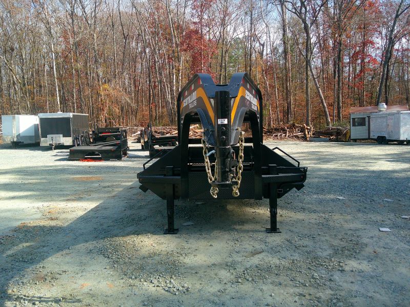The Southland ETGT Engineered Gooseneck Deckover Trailer is a top of the line engineered Gooseneck AND engineered frame. This unit has dual tandem 12K axles, with 25K GVWR. Main beam is engineered and robotically welded (high tensile steel). Engineered one piece continuous weld 90ksi gooseneck. Low profile bed with 90ksi Engineered Pierced-Beams and S3.0” x 2.9 lb. High Tensile 80ksi Super Lite I-Beams. 12’ Beavertail. Lockable toolbox, winch plate, locking chain rail, rub rails with chain spools and stake pockets. 14K bolt-on hydraulic jack.