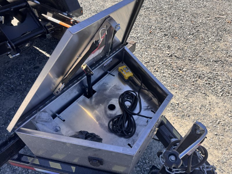 This standard dump trailer has low profile 24" sides. This unit has a double eye spring suspension, pump with deep cycle battery inside lockable security box, and a 20' wired hand remote.