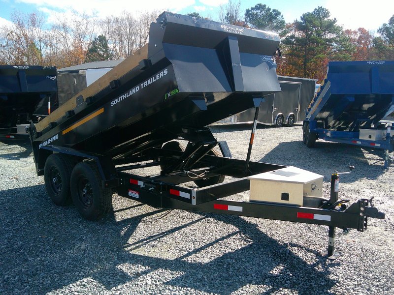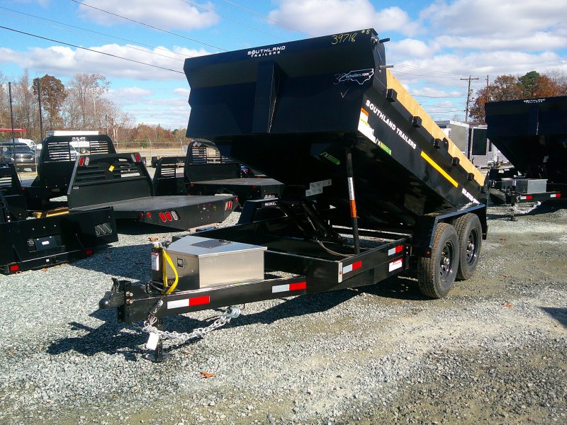 This standard dump trailer has low profile 24" sides. This unit has a double eye spring suspension, pump with deep cycle battery inside lockable security box, and a 20' wired hand remote.
