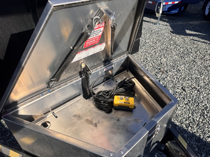 "This standard dump trailer has low profile 24"" sides. This unit has a double eye spring suspension, pump with deep cycle battery inside lockable security box, and a 20' wired hand remote.