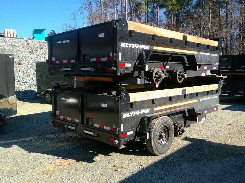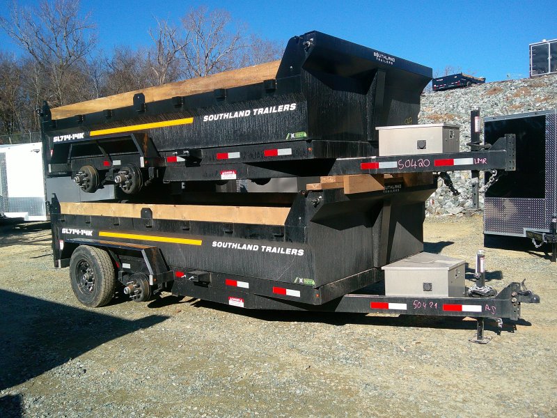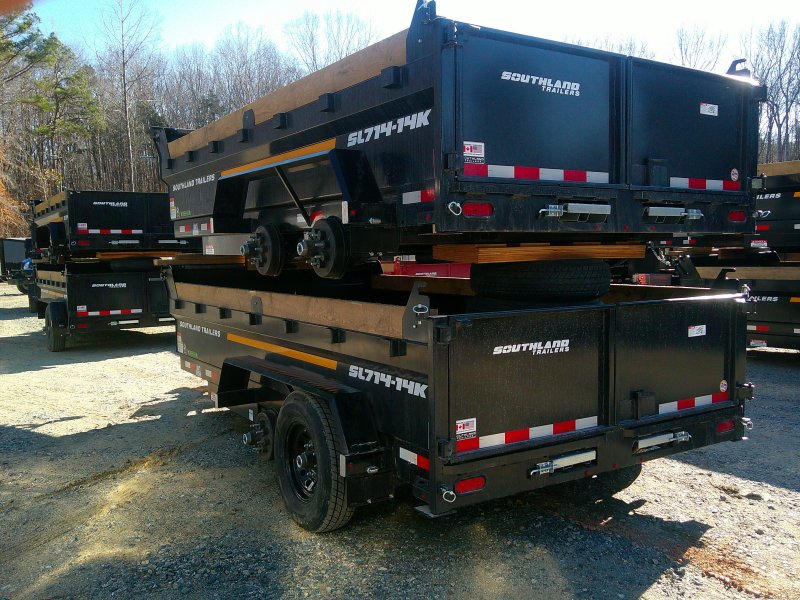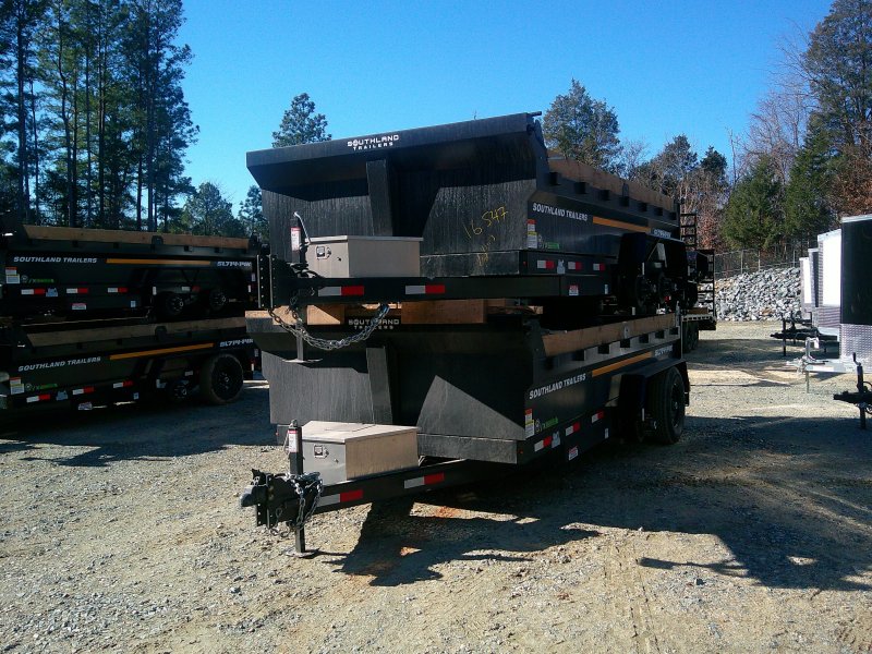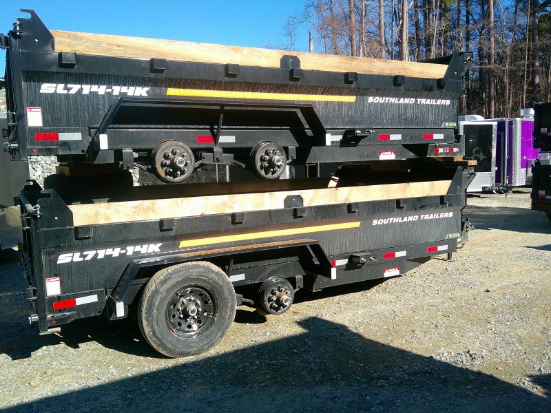 This deluxe 84x14 dump trailer comes with ramps. This dump trailer has an 84" box with 24" tall sides and no stick bottom corners. The dump trailer is a scissor lift hydraulic hybrid. Also includes light weight ramps.