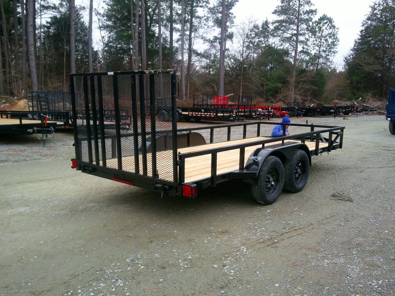 This HD 16-foot length utility/landscape trailer has a generous 72" width ideal for home and garden tasks. GVWR rating of 7,260 lb. This trailer features 12" top rail, 48" heavy-duty landscape gate, two 3,500 lb brake axles, and a LED lighting package.