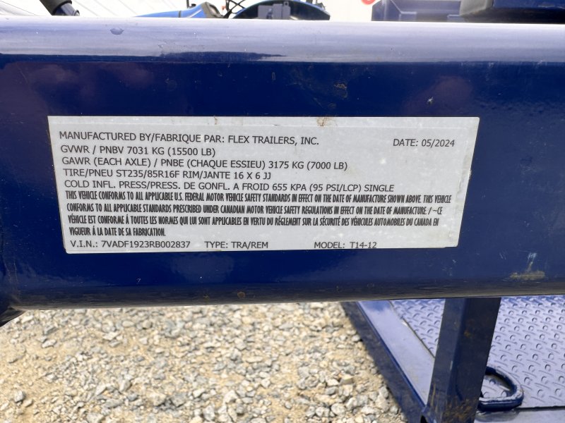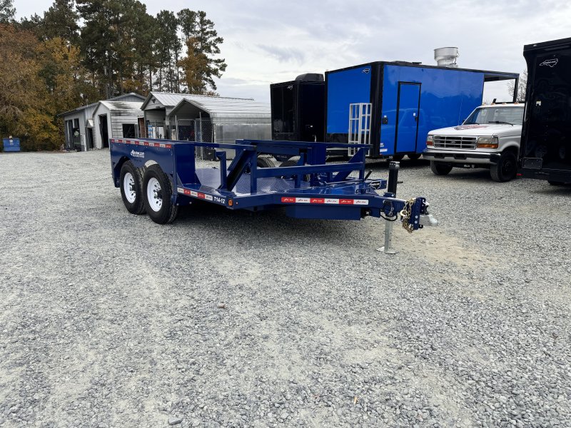 This 75" wide x 14' long T14-12 Drop Deck from Air Tow has tandem axles with a rubber suspension, electric brakes, and spare tire and spare tire mount. These units come standard with: