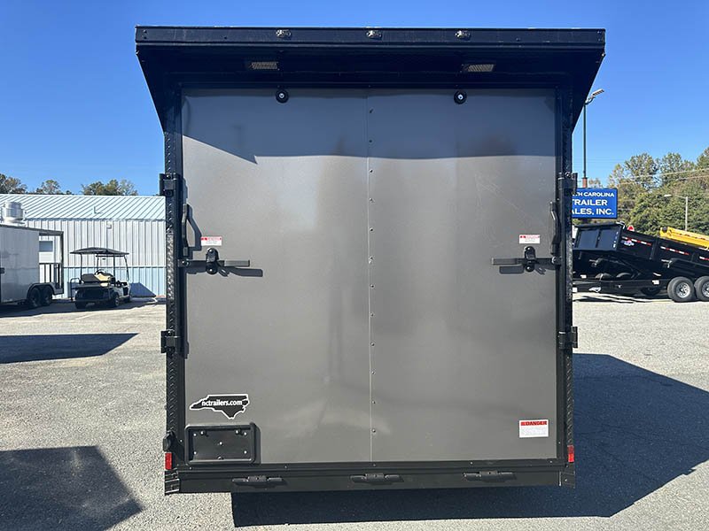 This v-nose 7x10 enclosed cargo trailer has a single braking axle with a rating of 3,500 lb GVWR. This Pro Series model has a 7' interior height, rear ramp door, 0.080"" polycore sides, a slant v-nose, rear wing with LED lights, and a 2000 lb jack.